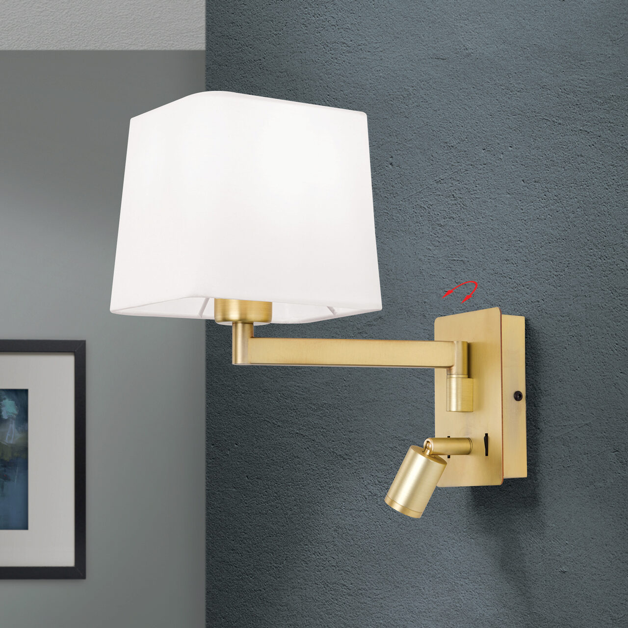 Carlton este o aplică modernă și robustă, care creează o atmosferă relaxantă și confortabilă în orice cameră. Finisajul său auriu mat elegant și contururile simple se vor potrivi cu siguranță oricărui decor. Abajurul este realizat dintr-o țesătură albă, plastifiată in interior, ignifugată, pentru a oferi siguranță maximă în zonele cu utilizare intensă, cum ar fi hotelurile. Aplica Carlton dispune de două surse de lumină, una fixă pentru iluminat general și una mobilă pentru iluminat local. Acest lucru o face perfectă pentru a fi utilizată ca lampă la capul patului în dormitor. Cu modelul Carlton, te poți bucura de un aspect modern și elegant, fără a face compromisuri în ceea ce privește siguranța. Experimenteaza confortul și eleganța modernă cu Carlton - alegerea perfectă pentru orice dormitor.
