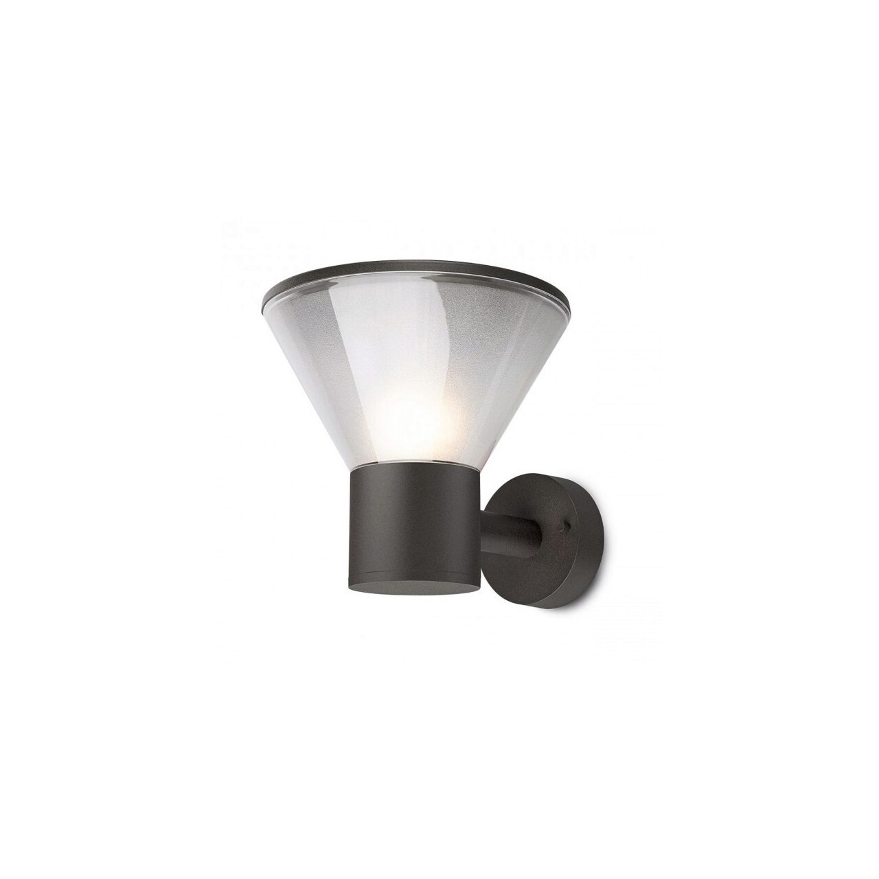 Aplica pentru exterior, E27, 18 W, corp din aluminiu turnat sub presiune vopsit in camp electrostatic culoare gri inchis, dispersor din policarbonat satinat.