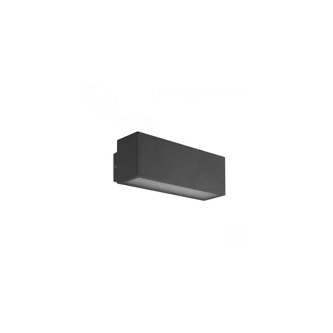 Aplica pentru exterior echipata cu LED-uri SMD, 10 W, 3000 K, 900/725 lm, cu distributie luminoasa directa/indirecta. Corp din aluminiu turnat sub presiune vopsit in camp electrostatic culoare gri inchis, dispersoare din sticla satinata.