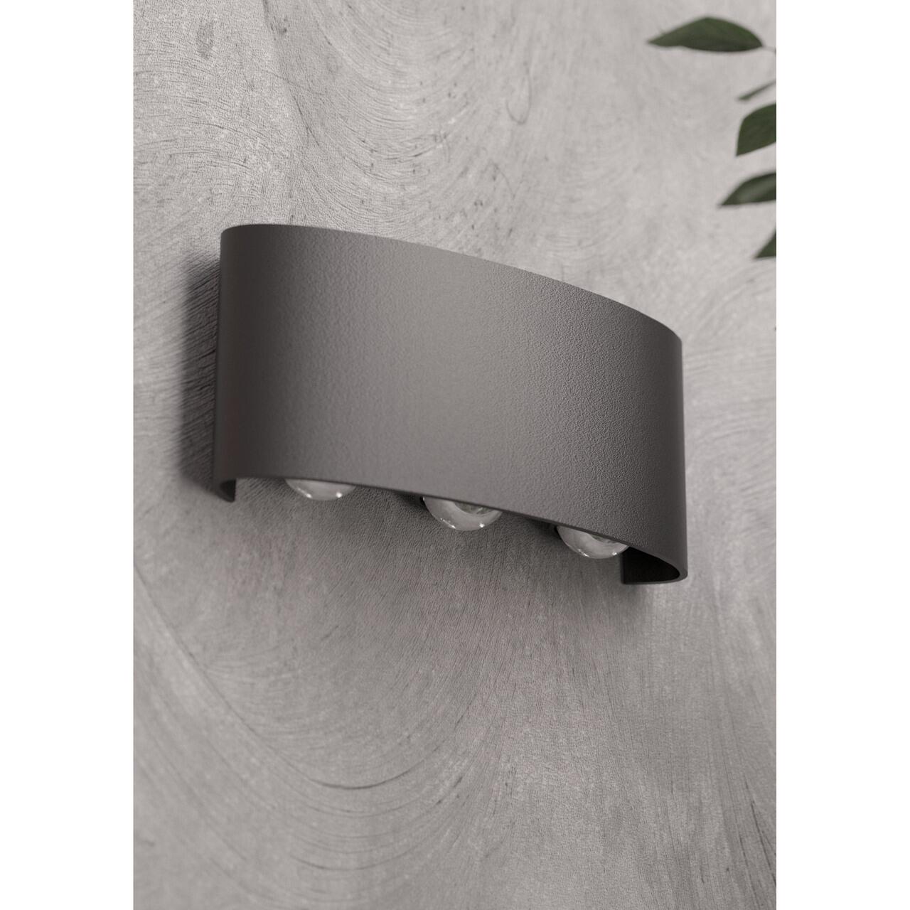 Aplica pentru exterior echipata cu LED-uri de putere, dispersie luminoasă directa/indirecta, 3000 K, 6 W, 615/470 lm. Corp din aluminiu turnat sub presiune vopsit in camp electrostatic culoare gri inchis, dispersoare din sticla transparenta.