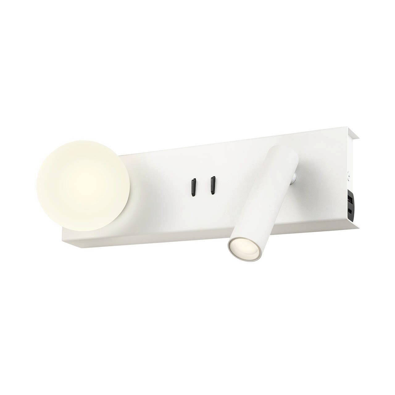 Aplice pentru interior echipate cu LED-uri SMD, port USB tip A + C, 2.1A și întrerupator ON/OFF. Structură din metal și aluminiu vopsită alb mat, auriu mat, negru mat sau cu finisaj bronz antic, dispersor din sticlă opală satinată.