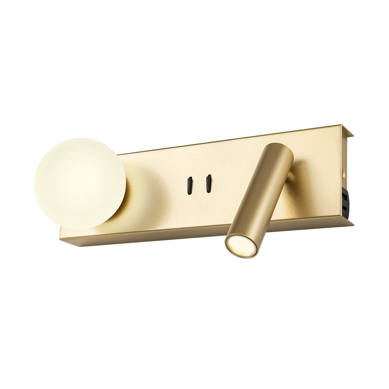 Aplice pentru interior echipate cu LED-uri SMD, port USB tip A + C, 2.1A și întrerupator ON/OFF. Structură din metal și aluminiu vopsită alb mat, auriu mat, negru mat sau cu finisaj bronz antic, dispersor din sticlă opală satinată.