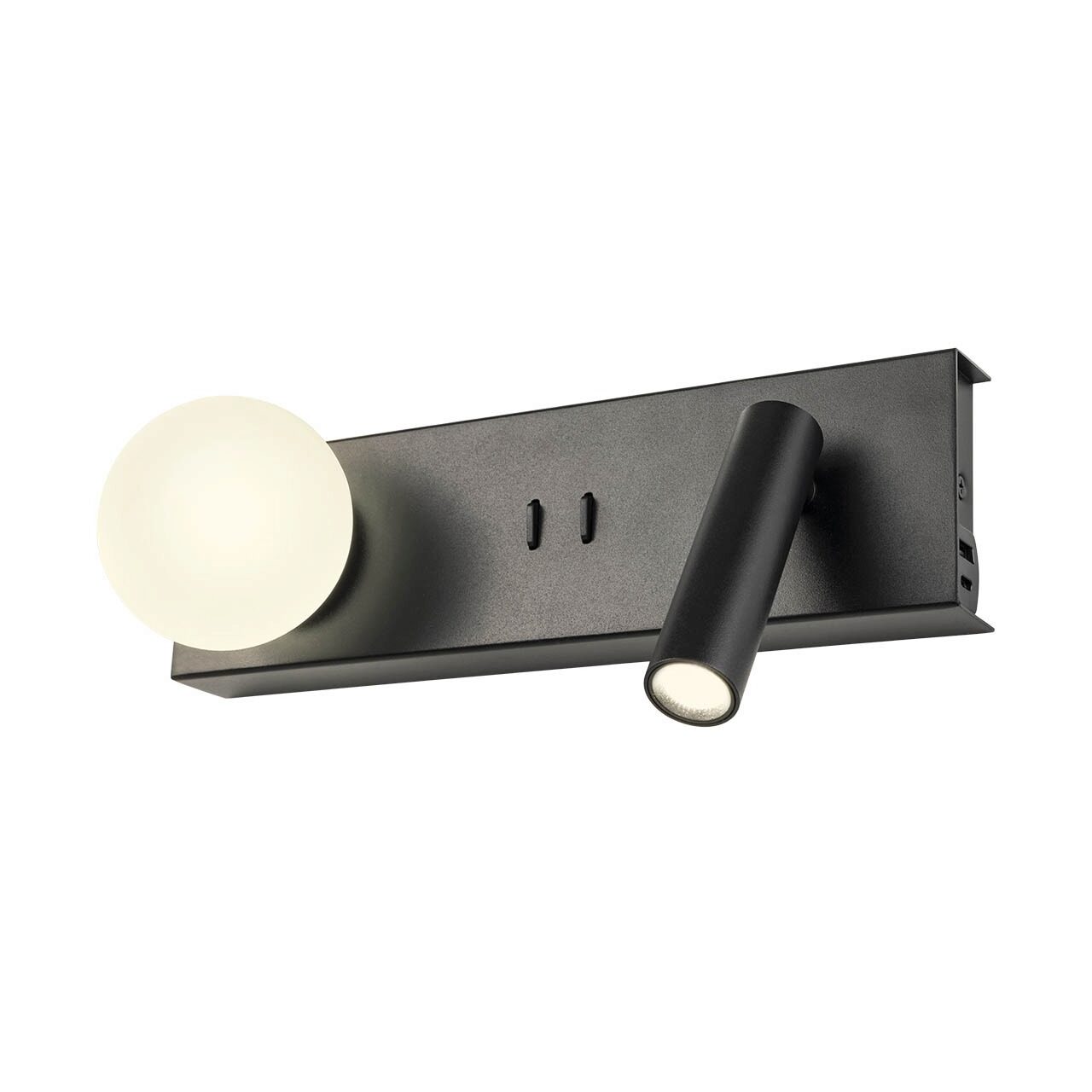 Aplice pentru interior echipate cu LED-uri SMD, port USB tip A + C, 2.1A și întrerupator ON/OFF. Structură din metal și aluminiu vopsită alb mat, auriu mat, negru mat sau cu finisaj bronz antic, dispersor din sticlă opală satinată.