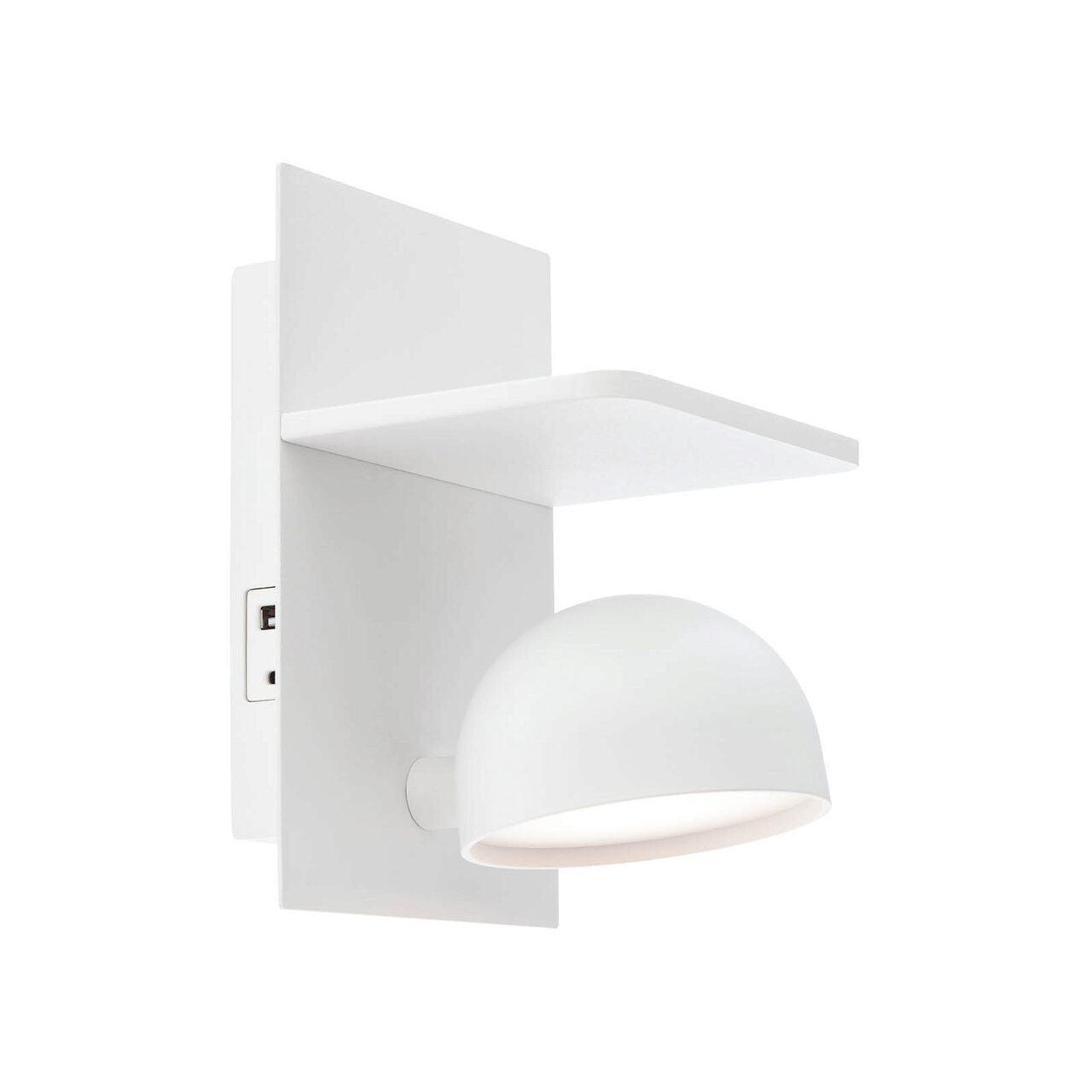 Aplică/Spot pentru interior orientabil, echipată cu LED SMD, port USB (5V/2A) și întrerupător ON/OFF, structură din aluminiu turnat sub presiune, vopsită în câmp electrostatic alb mat, dispersor din PMMA opal.