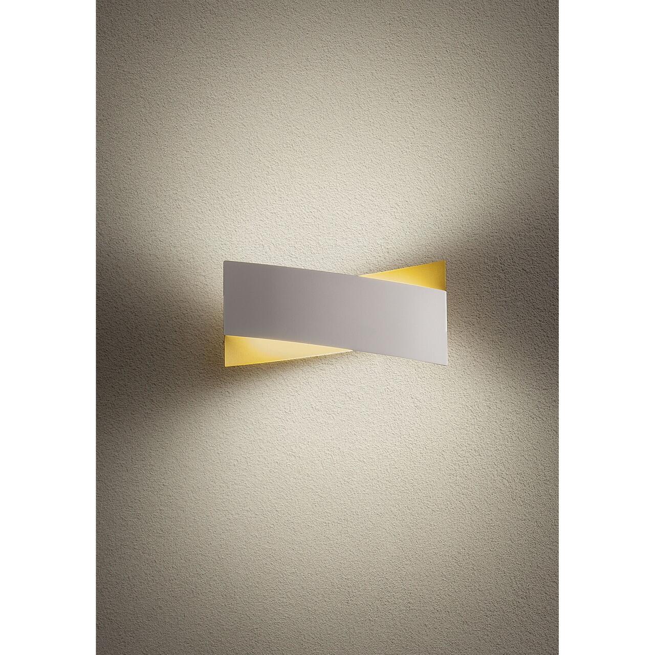 Aplică moderna cu LED-uri SMD 17W/1800 lmcu dispersie directă/indirectă a luminii. Corp din metal vopsit în câmp electrostatic aur mat la interior și alb mat la exterior, dispersoare din acryl satinat.