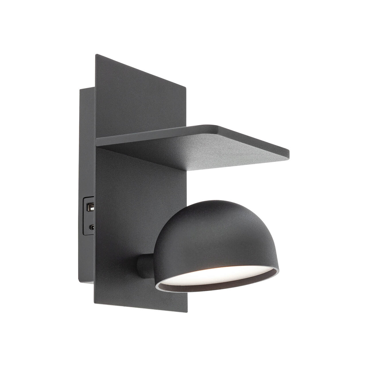 Aplică/Spot pentru interior orientabil, echipată cu LED SMD, port USB (5V/2A) și întrerupător ON/OFF, structură din aluminiu turnat sub presiune, vopsită în câmp electrostatic negru mat, dispersor din PMMA opal.