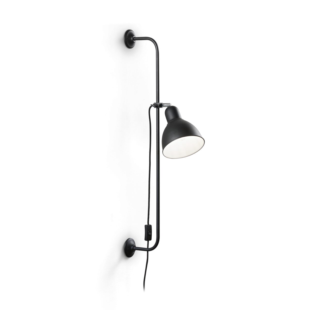 Aplica moderna, in stil industrial, din colectia Shower cu cadru din metal vopsit negru mat si element articulat din crom, iar difuzorul este reglabil.