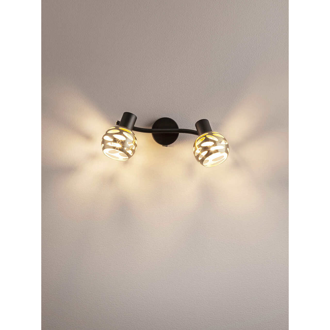 Aplică/plafonieră pentru interior, structură din metal vopsit negru mat cu detalii bronz, abajururi din metal traforat finisat bronz. Becurile nu sunt incluse.