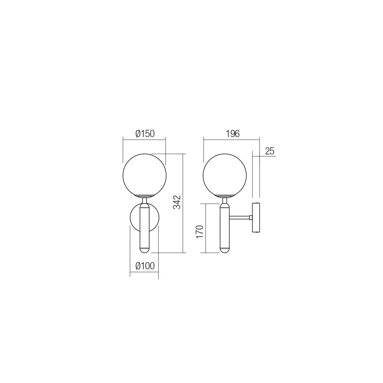 Aplică pentru interior, structura din metal vopsit negru mat, dispersor din sticlă suflată opal.