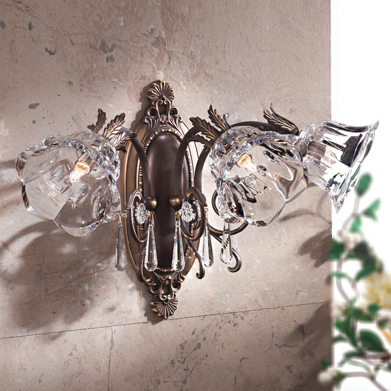 Aplica La Boheme cu 3 brate, lucrata manual din alama masiva patinata, realizata in stilul clasic italian interpretat modern. Alama este lucrata cu mare atentie la detalii, bogat decorata, iar abajururile sunt din cristal "24% High lead crystal", taiate manual. Aplica face parte din colectia La Boheme, o colectie eleganta si mereu actuala, care cuprinde aplice simple, duble si triple, candelabre (fiecare candelabru La Boheme poate fi utilizat atat ca candelabru, cat si ca plafoniera), plafoniere, veioze si lampadare, aurite si patinate. Mai mult, alama ce formeaza structura acestor corpuri de iluminat (indiferent de tipul finisajului) este protejata cu un strat de lac aplicat la finalul procesului de fabricatie.