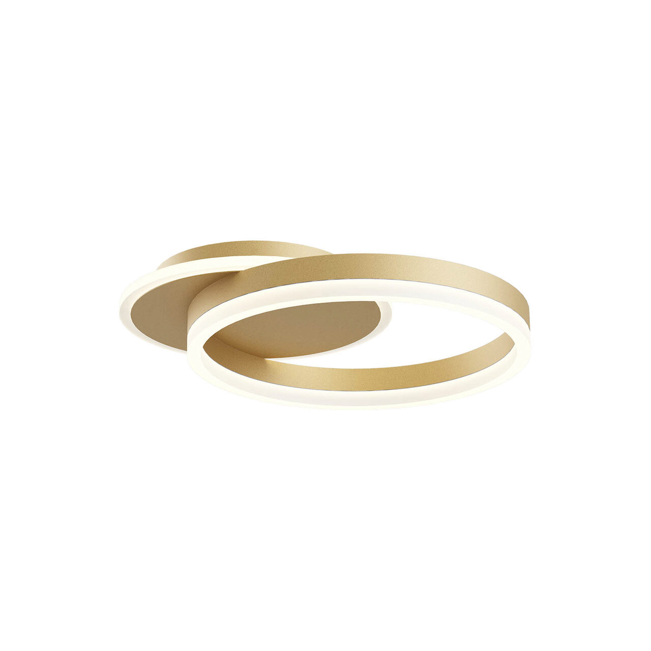 Aplică / plafonieră pentru interior, echipată cu LED-uri SMD, cu posibilitate de selectare a temperaturii de culoare a luminii, structură din metal și aluminiu vopsită auriu mat, dispersoare din acryl satinat.