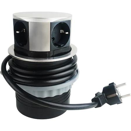 Bloc multiprize cu fixare pe verticala, incorporabil si retractabil, cu deasing modern, echipat cu 4 prize Schuko. Cablul de alimentare de 1.5 metri lungime este prevazut cu stecher iar prizele au protectie pentru copii.