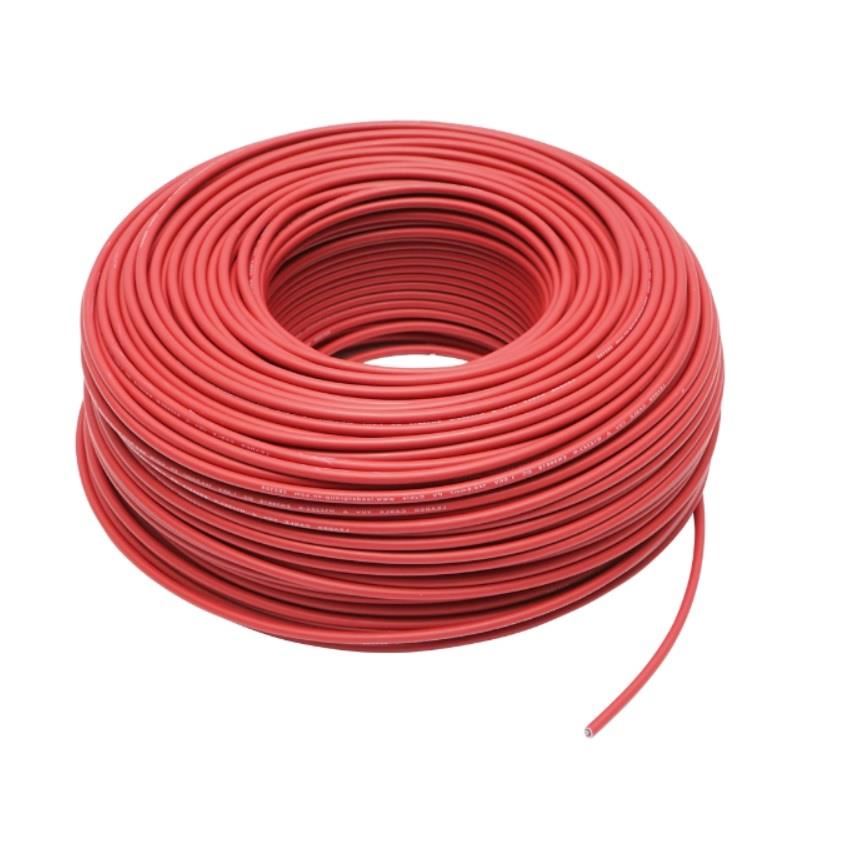 Cablu solar MR4 diametru 4 mm², culoare rosie. Datorita constructiei cu izolatie dubla cablu solar asigura o rezistenta mare la coroziune, la temperaturi extreme, are o rezistenta mecanica mare, este rezistent la apa, agenti chimici si la produse petroliere. Conductor este din cupru cositorit. Este flexibil si usor de prelucrat, are proprietati anti inbatranire si este rezistent UV. Temperatura de lucru : - 45º C la +125º C. Cablu solar este compatibil cu conectori MC4. Ideal pentru orice tip de aplicatie fotovoltaica, insulara sau conectata la retea. Se vinde doar multiplu de 10 m.
