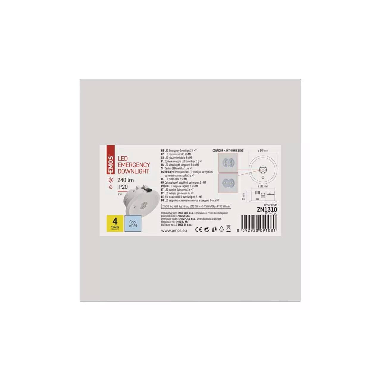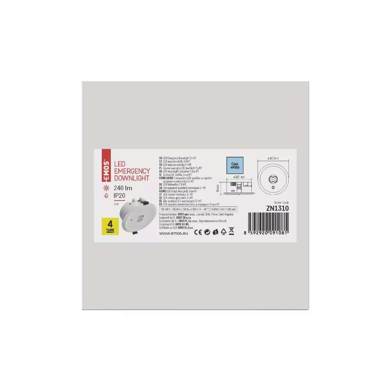 Corp de iluminat de siguranta, incastrat, rotund, 3W LED 3h, Emos ZN1310