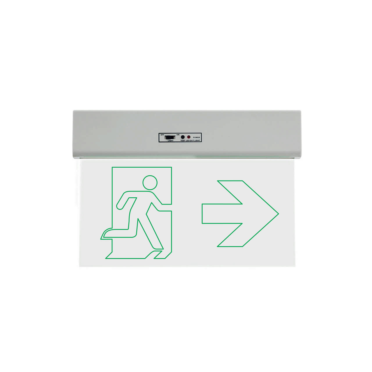 Corp de iluminat de siguranta echipat cu LED-uri SMD 3020, pentru montaj aparent pe perete sau tavan, cu pictograma SAGEATA DREAPTA, model nou. Pe tavan corpul se poate monta si rotit la 180° astfel incat pictograma devine SAGEATA STANGA. Autonomie de functionare de 2 ore, regim de functionare permanent.