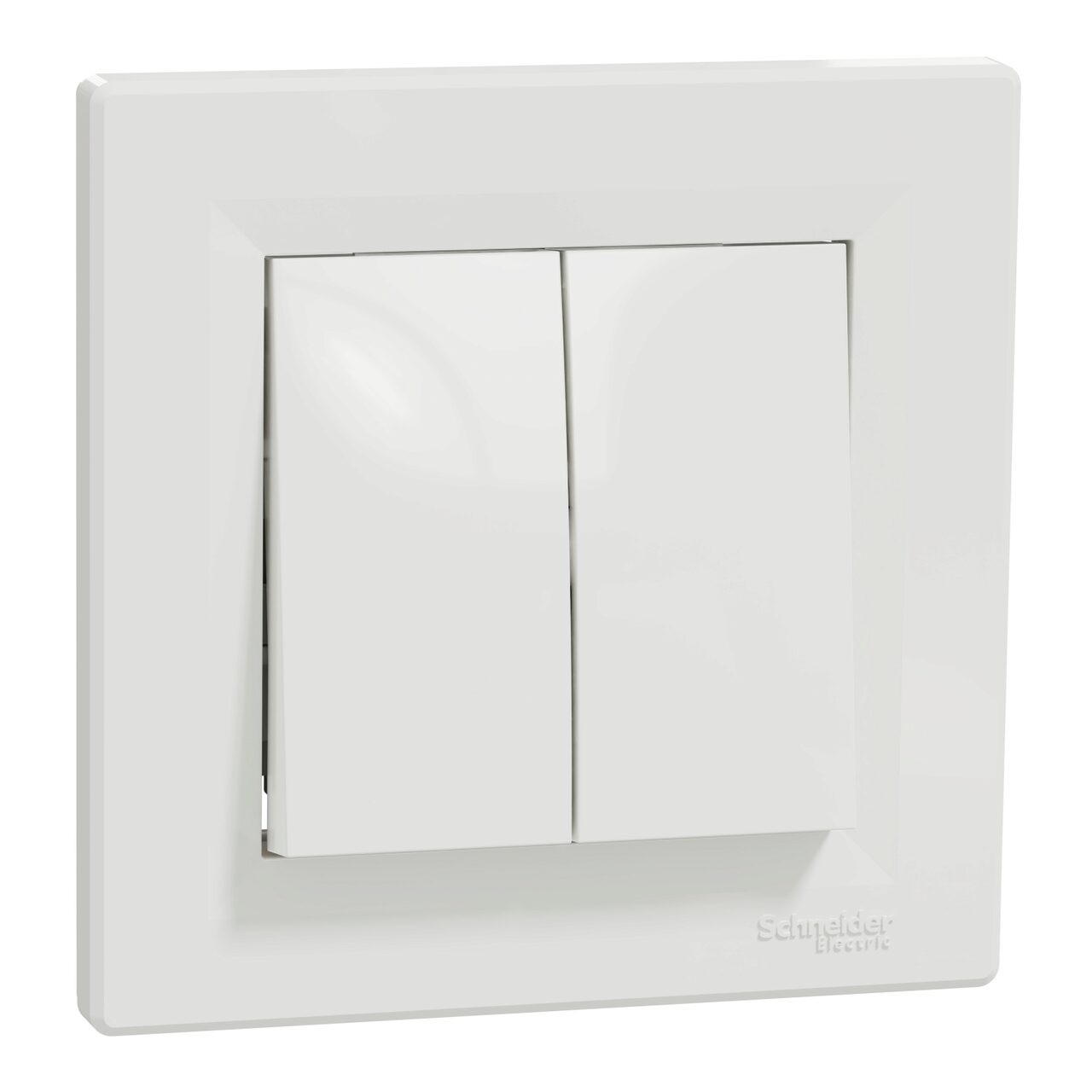 Intrerupator dublu, alb, 10AX, fara surub, Asfora Schneider Electric, EPH0300121