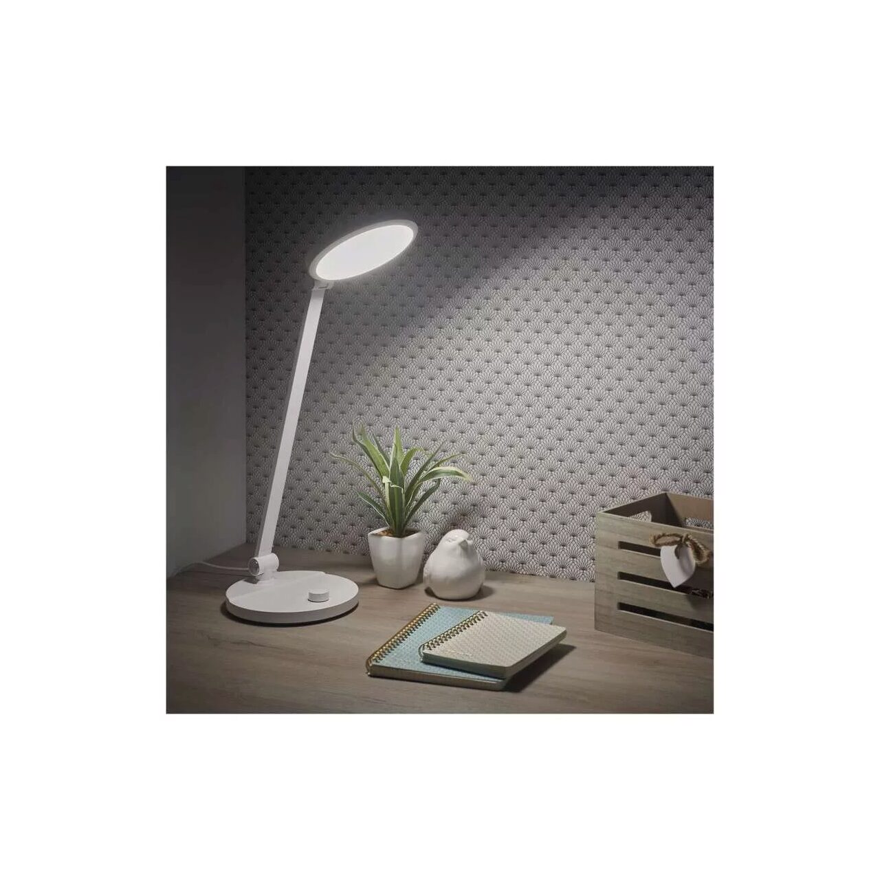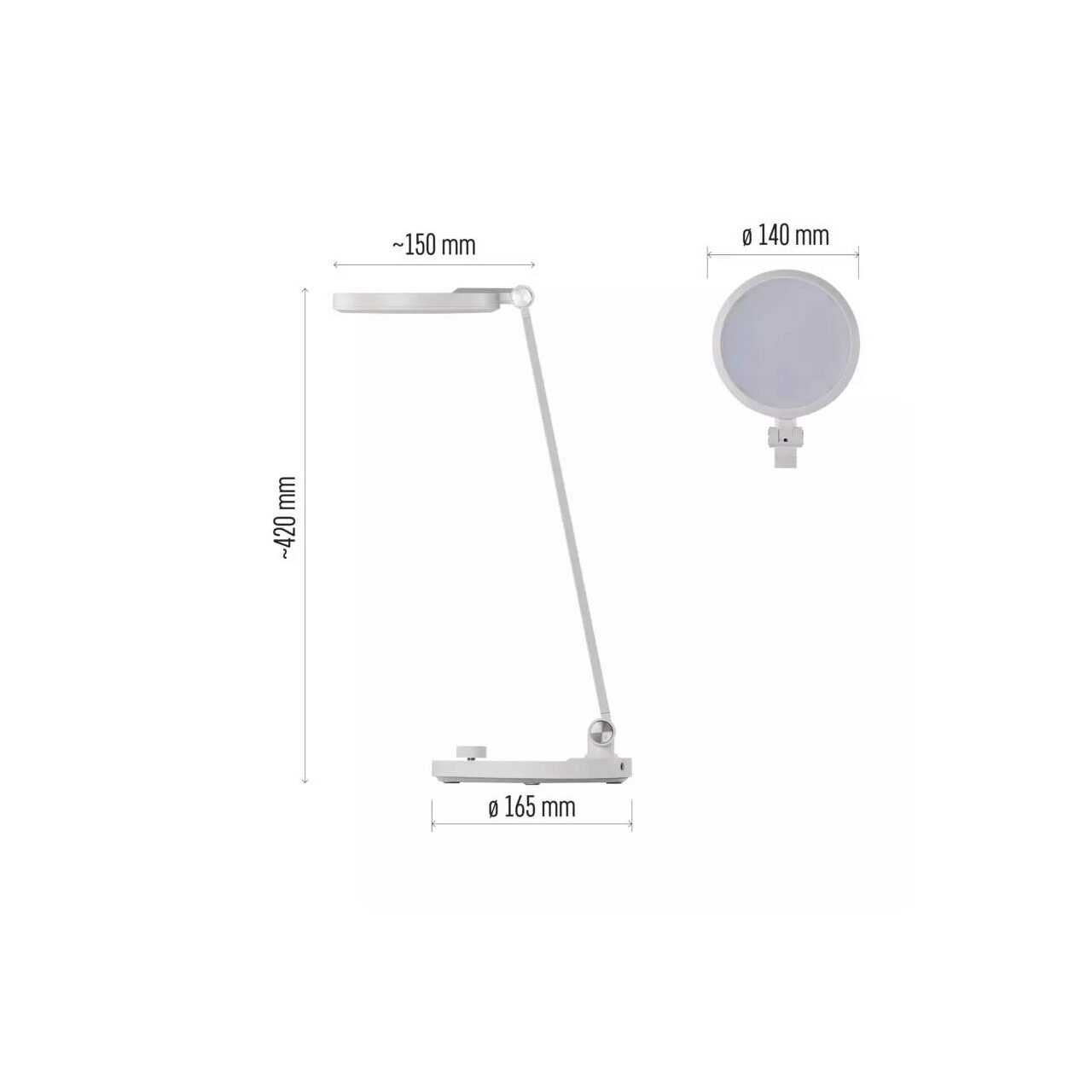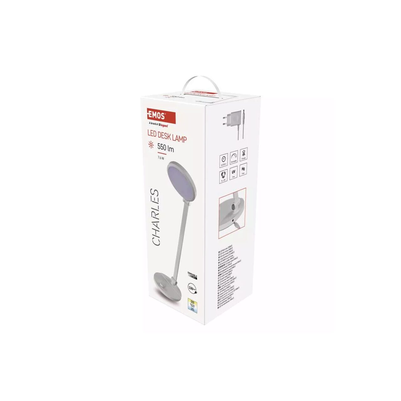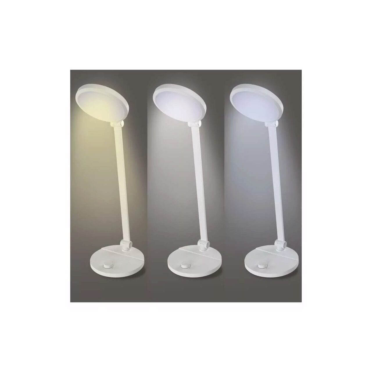 Lampa de birou alba, stil minimalist, dimmabila 3000-6500K, 550lm, 7.6W, Emos Z7628W. Lampa se remarca prin unghiurile diferite de orientare a partii superioare, protectie IP20, durata de viata de 10000 ore si o lungime a cablului de alimentare de 1.3 m.