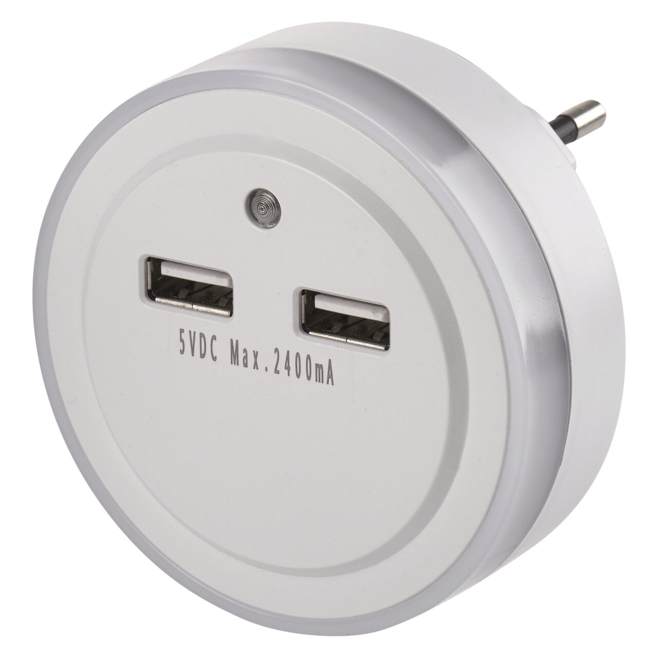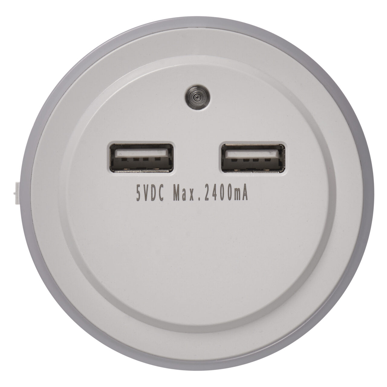 Lampa de veghe cu fotocelula incorporata si doua porturi USB pentru incarcrea diferitelor dispozitive (5V, 2400 mAh).