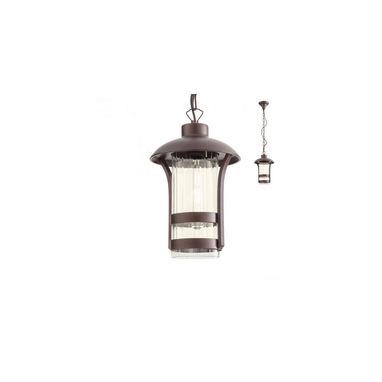 Lustra pentru exterior, E27, 42 W, corp din metal finisat maro inchis, dispersor din sticla decorativa cu striatii.
