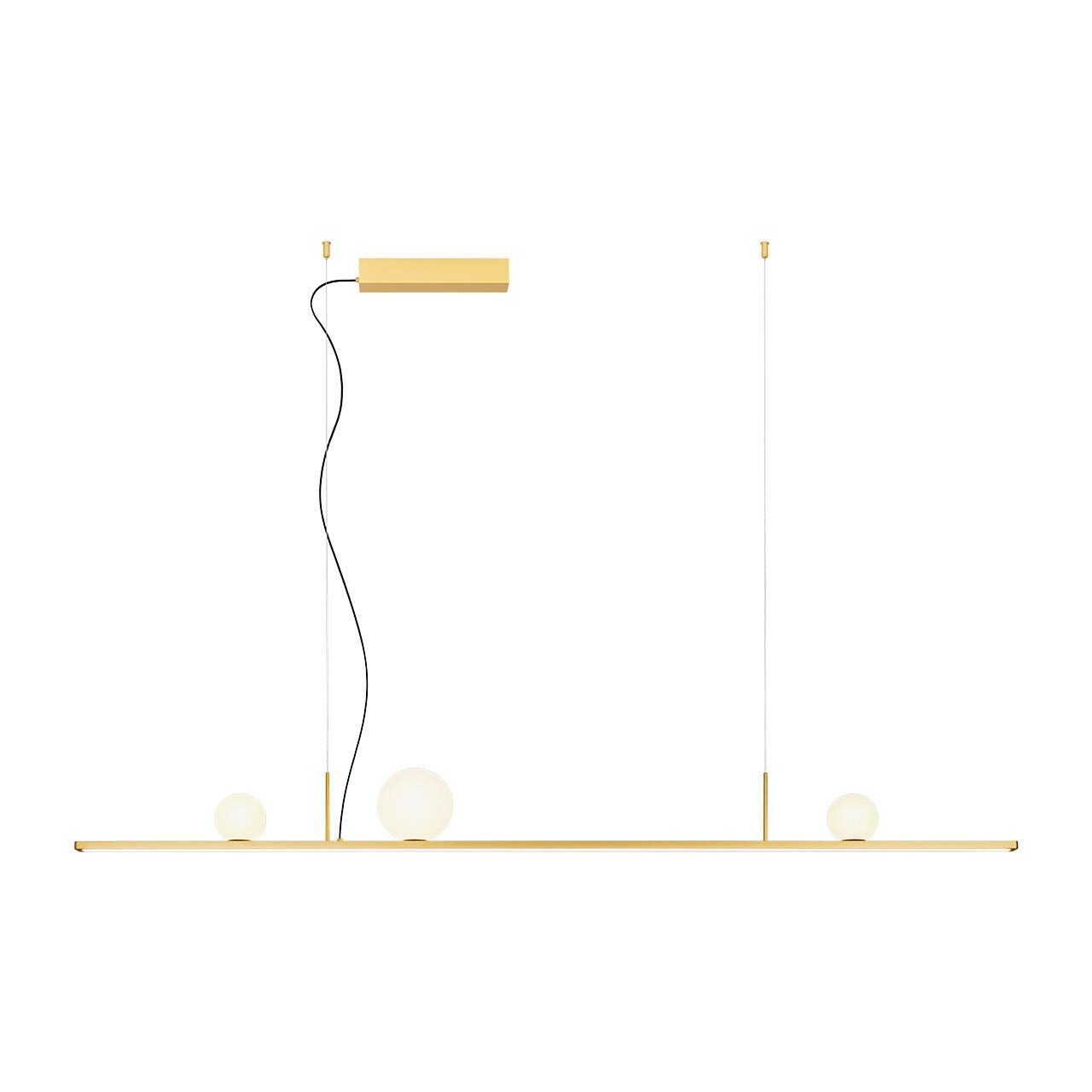 Lustre echipate cu LED-uri SMD și COB, dimabile TRIAC, cu distribuție directă/ambientală a luminii. Structură din aluminiu extrudat, finisată alamă mată aurie sau vopsită negru mat, prevăzută cu un dispersor din policarbonat alb opal pentru lumina directă și trei sfere din sticlă suflată alb opal sau fumuriu degrade pentru lumina ambientală.