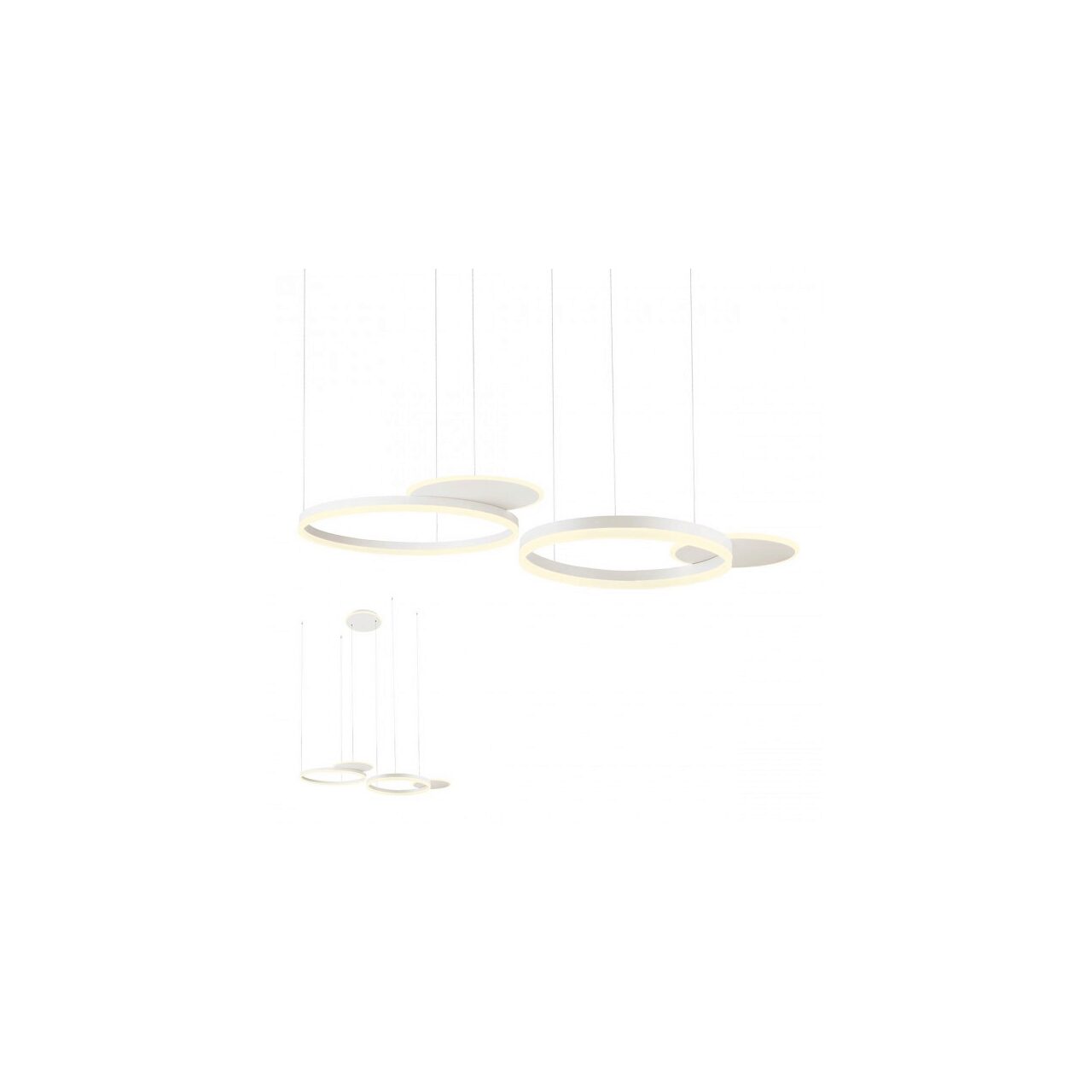Lustra pentru interior echipat cu LED-uri SMD 114W/12360 lm, dimmabila in 3 trepte, cu structură din aluminiu și metal vopsită alba mat, dispersoare din acryl alba satinat.