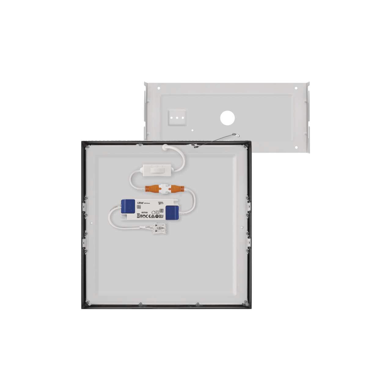 Panou LED patrat de dimensiuni mici, din otel cu dispersor din acryl, care se monteaza aparent, echipat cu o sursa LED, cu posibilitatea de schimbare a temperaturii de culoare 3000K, 3500K si 4000K, 28.5W, cu grad de protectie IP20.