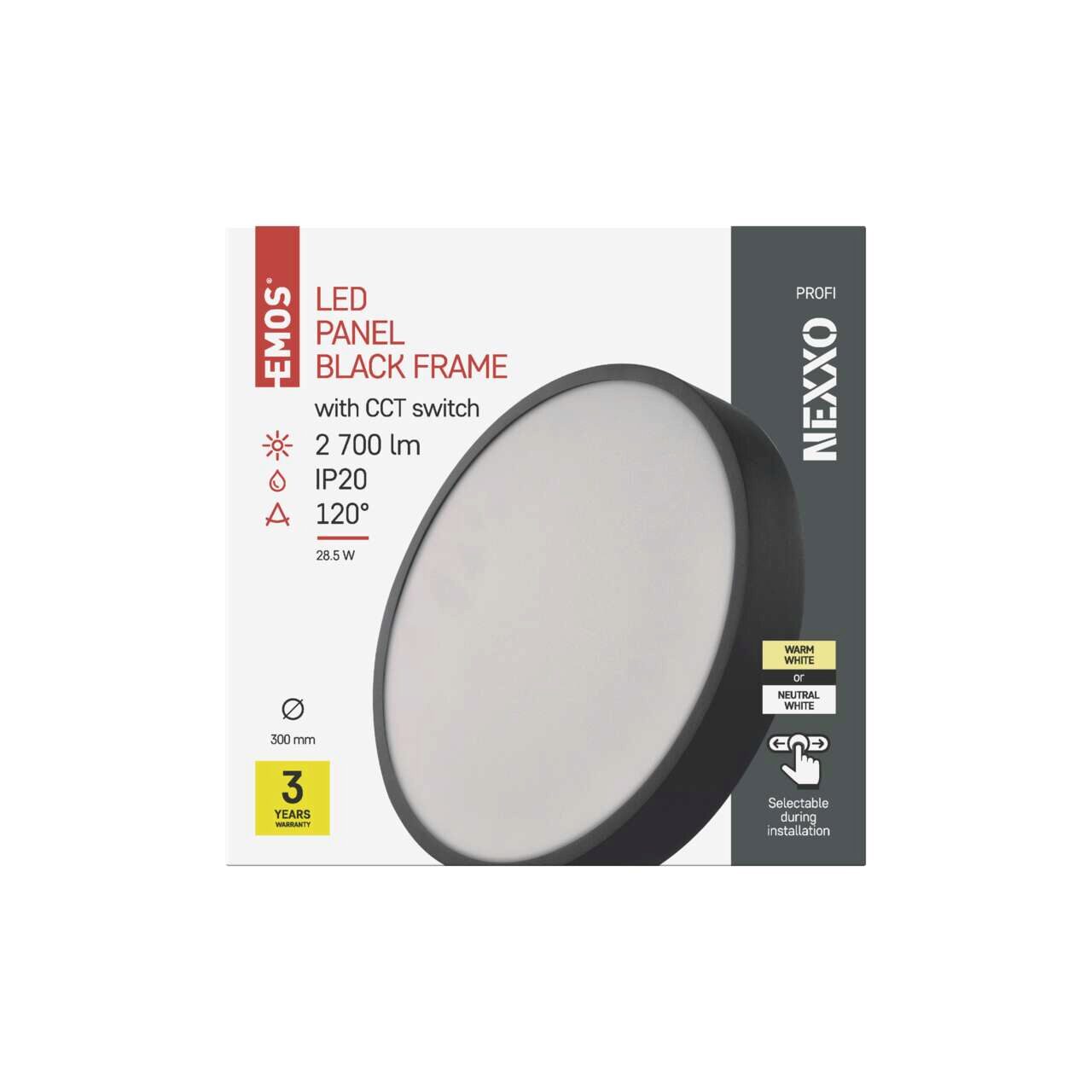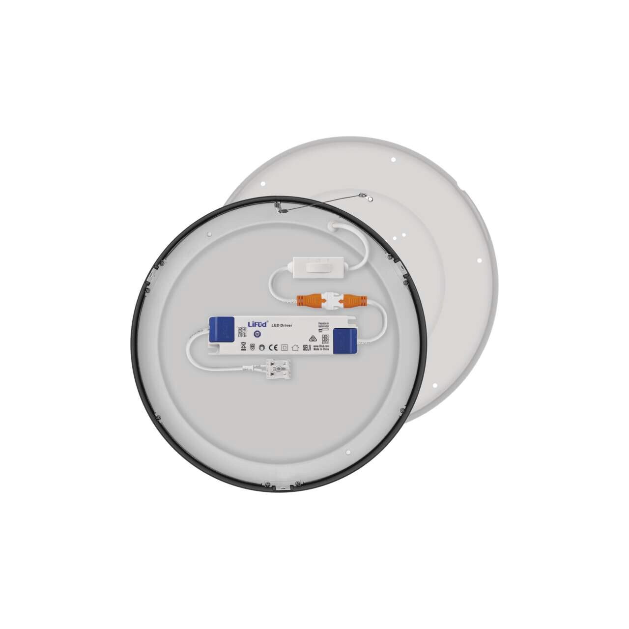 Panou LED rotund de dimensiuni mici, din otel cu dispersor din acryl, care se monteaza aparent, echipat cu o sursa LED, cu posibilitatea de schimbare a temperaturii de culoare 3000K, 3500K si 4000K, 28.5W, cu grad de protectie IP20.