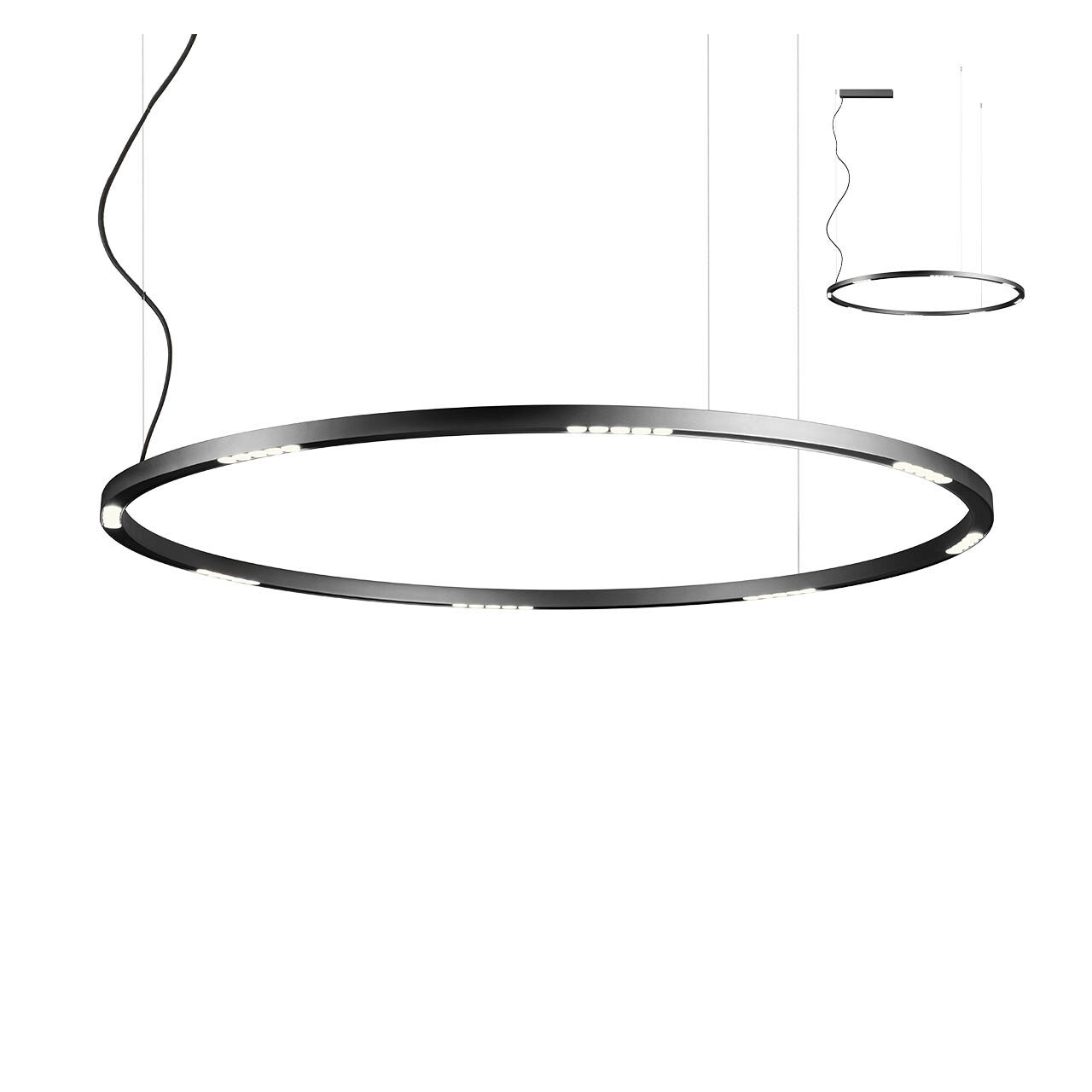 Pendul pentru interior echipat cu LED-uri SMD, structură din aluminiu și metal, vopsită negru mat.