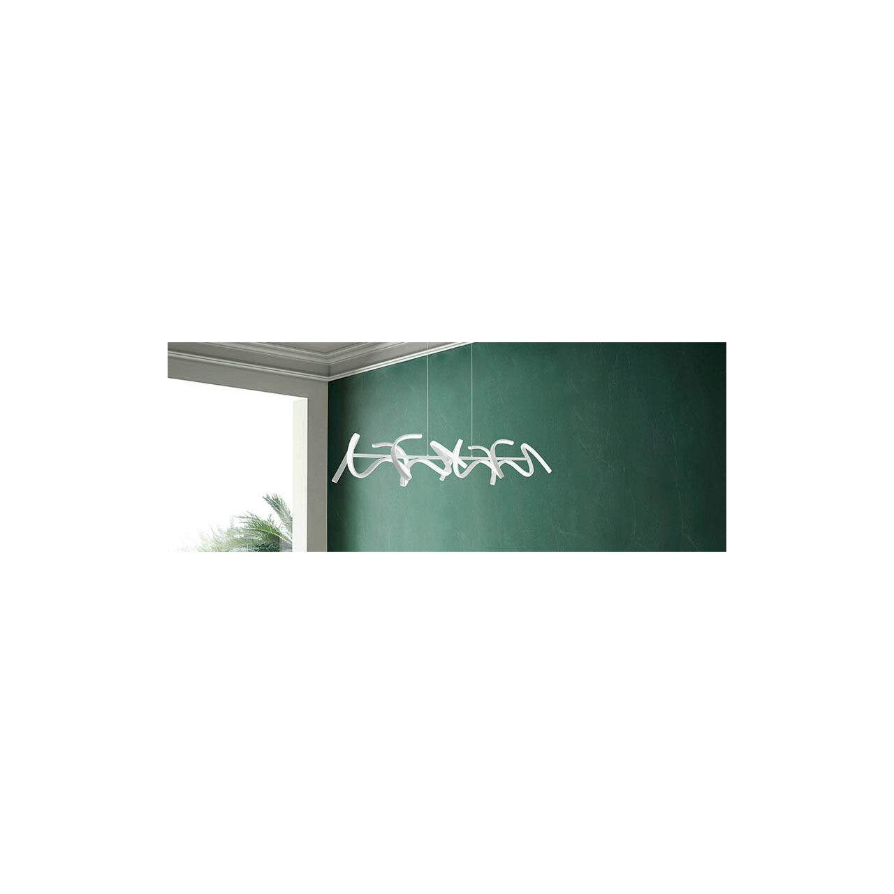 Pendul pentru interior echipat cu LED-uri SMD, structură din aluminiu și metal vopsit în câmp electrostatic alb mat, dispersor din silicon alb opal.