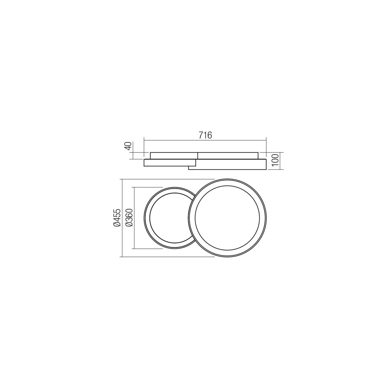 Plafonieră pentru interior, echipata cu LED-uri SMD, cu posibilitate de selectare a temperaturii de culoare a luminii, structură din metal vopsită în câmp electrostatic în culoare alb mat, dispersoare din acryl alb opal.