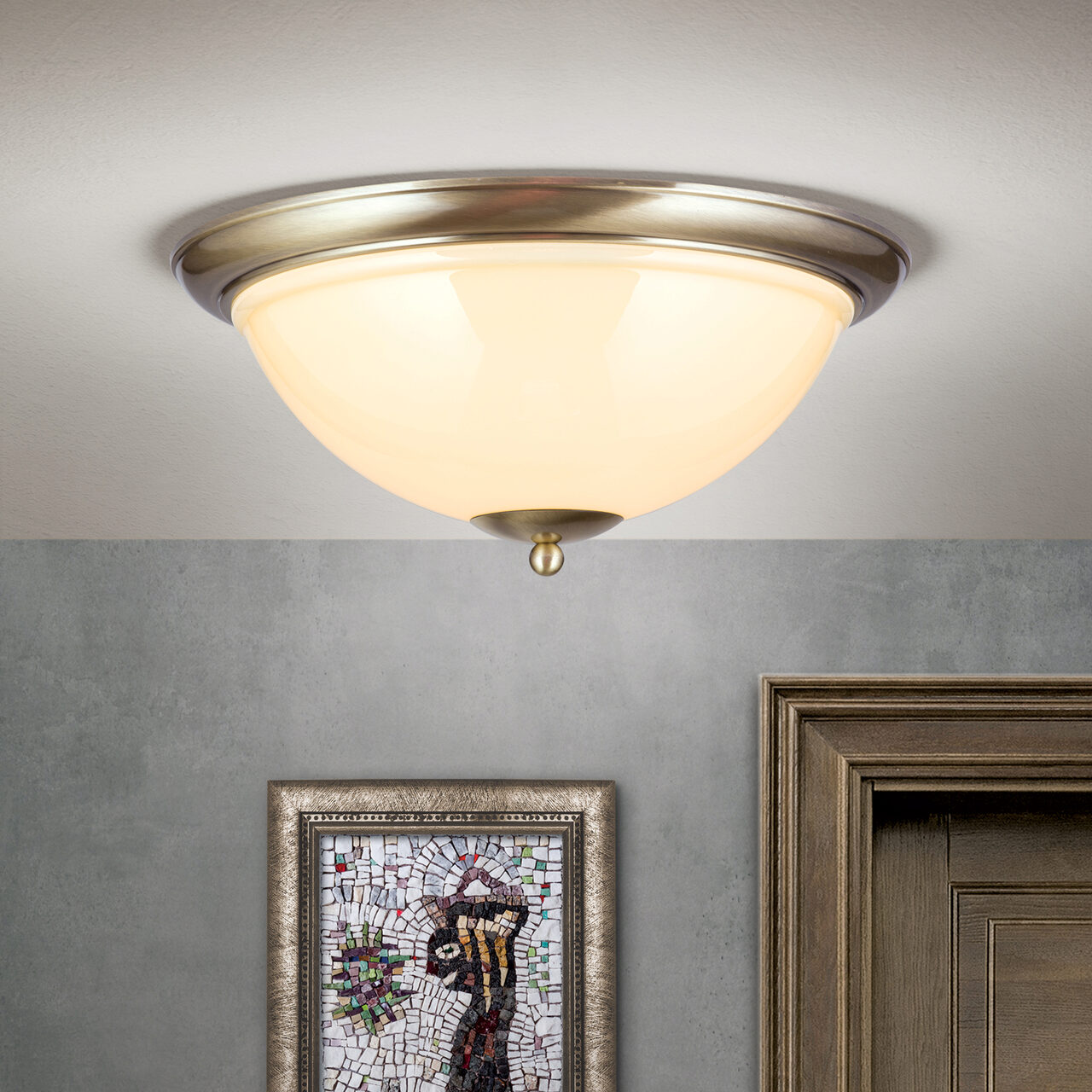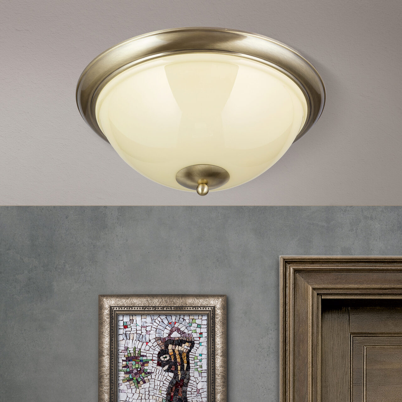 Plafoniera Austrian Old Lamp este inspirată de stilul tradițional austriac de lămpi. Acest corp de iluminat clasic va încânta și va impresiona prin frumusețea sa atemporală și stilul tradițional. Având un abajur frumos din sticlă și o parte metalică finisată în alamă patinată, este o piesă de decor rafinată pentru orice spațiu de locuit. Lampa este realizată manual din materiale de cea mai bună calitate și finisată cu o atenție impecabilă la detalii. Nu numai că această lampă adaugă o notă de eleganță tradițională oricărui decor, dar prin designul său asigură, de asemenea, o iluminare amplă. Este versatilă și poate fi utilizată atât în decoruri tradiționale, cât și moderne. Plafoniera este perfectă pentru orice încăpere din casa ta - de la un dormitor la un hol - și completează o gamă largă de decoruri interioare. Finisajul din alamă creează o ambianță caldă și primitoare și este perfect pentru a crea un efect clasic și vintage în orice cameră. Designul său clasic asigură, de asemenea, că nu va arăta învechit în anii următori, permițându-ti să te bucuri de plafoniera mulți ani de acum încolo. Adaugă instantaneu un aspect clasic și atemporal spațiului tau de locuit cu această uimitoare plafonieră veche austriacă! Este ușor de instalat și vine cu toate feroneriile necesare.