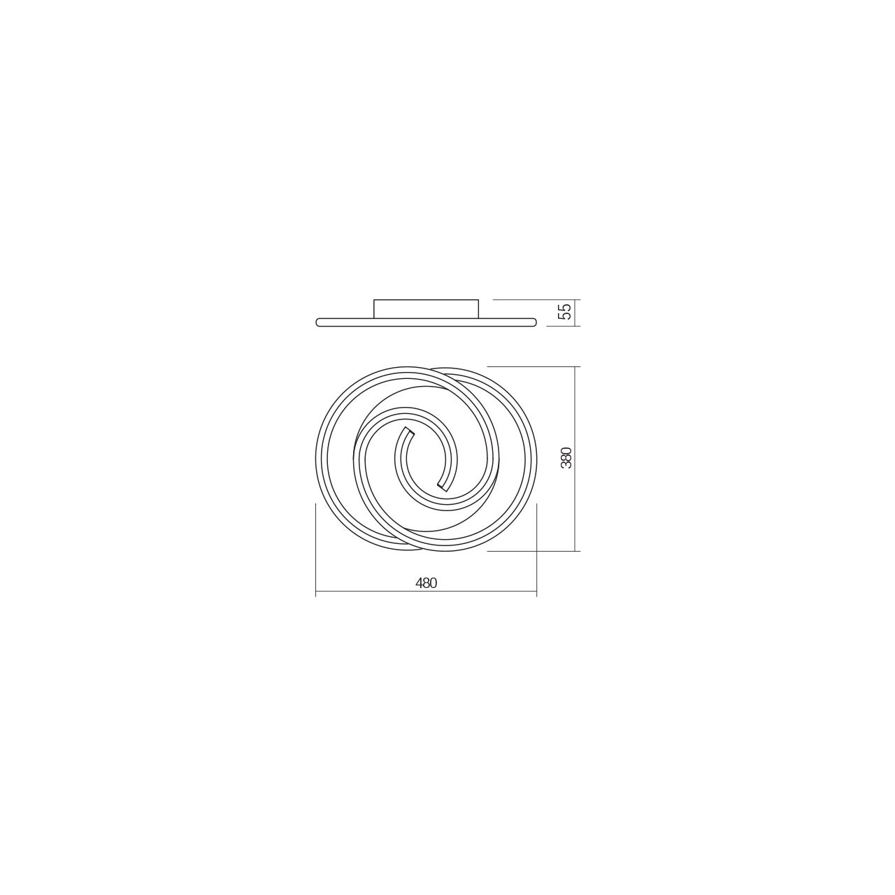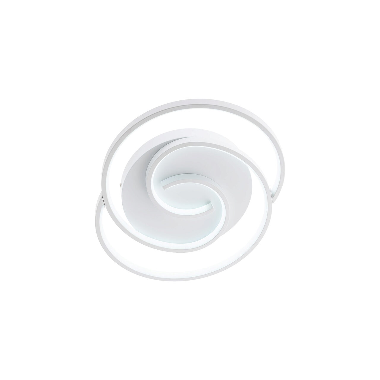 Plafonieră pentru interior echipată cu led-uri SMD, structură din metal și aluminiu vopsit alb mat cu dispersoare din silicon alb opal. Livrată cu telecomandă (cu 2 baterii AAA incluse) cu următoarele funcții: ON/OFF, 3 programe de funcționare, reglarea intensității luminoase, setarea temperaturii de culoare a luminii de la alb cald la alb rece, timer și mod lumină veghe.