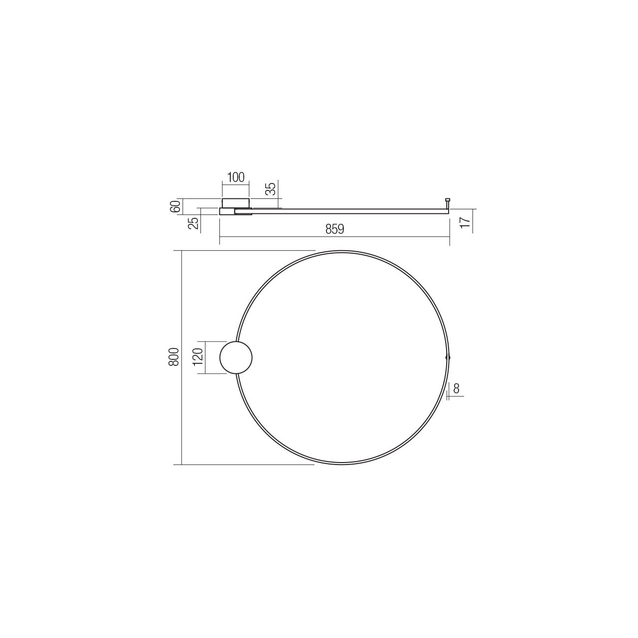 Aplică/plafonieră pentru interior echipată cu LED-uri SMD, structură din metal vopsită negru mat cu cerc din aluminiu finisat alămă, dispersor din silicon alb.
