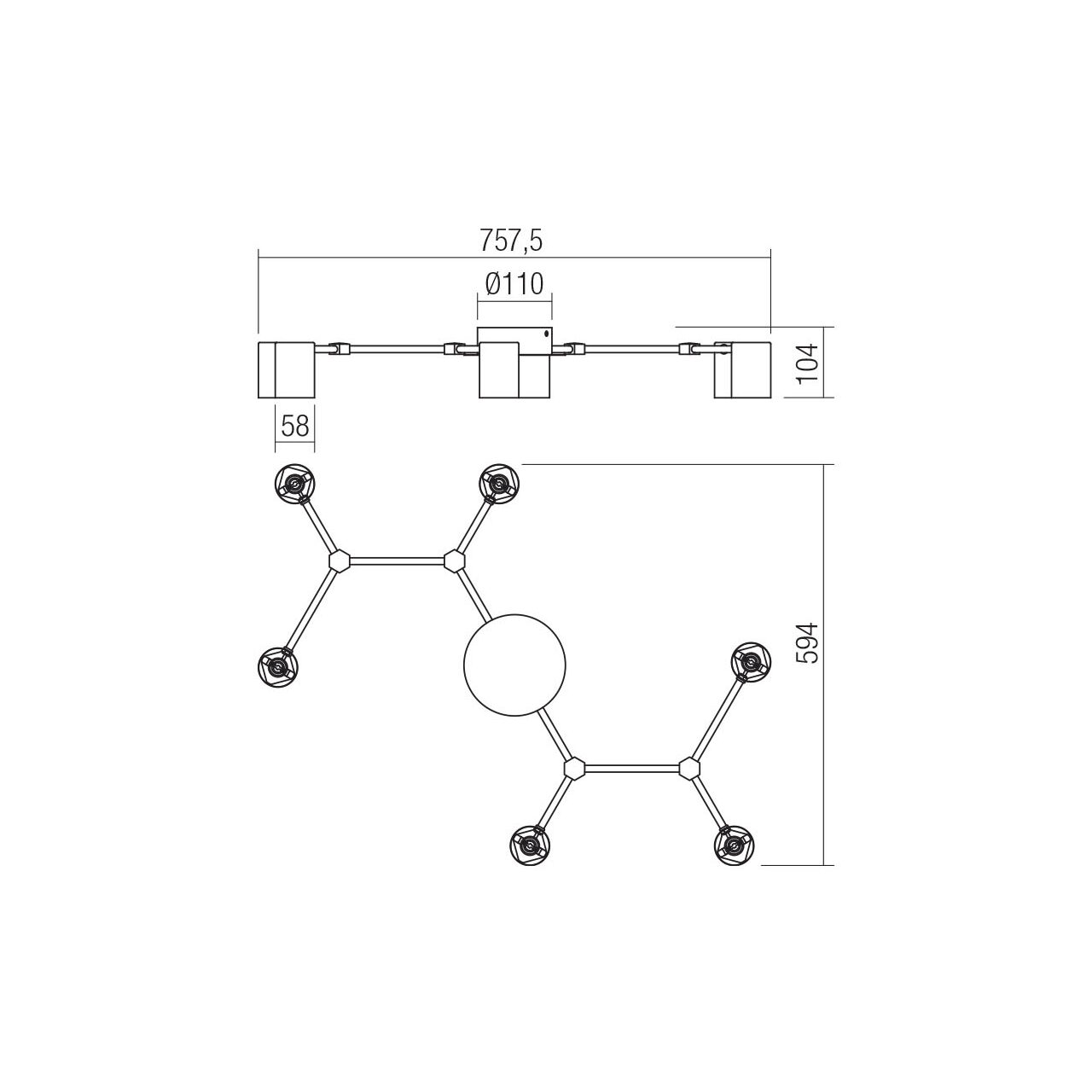 Plafonieră pentru interior, structură și abajururi din metal vopsite negru mat.