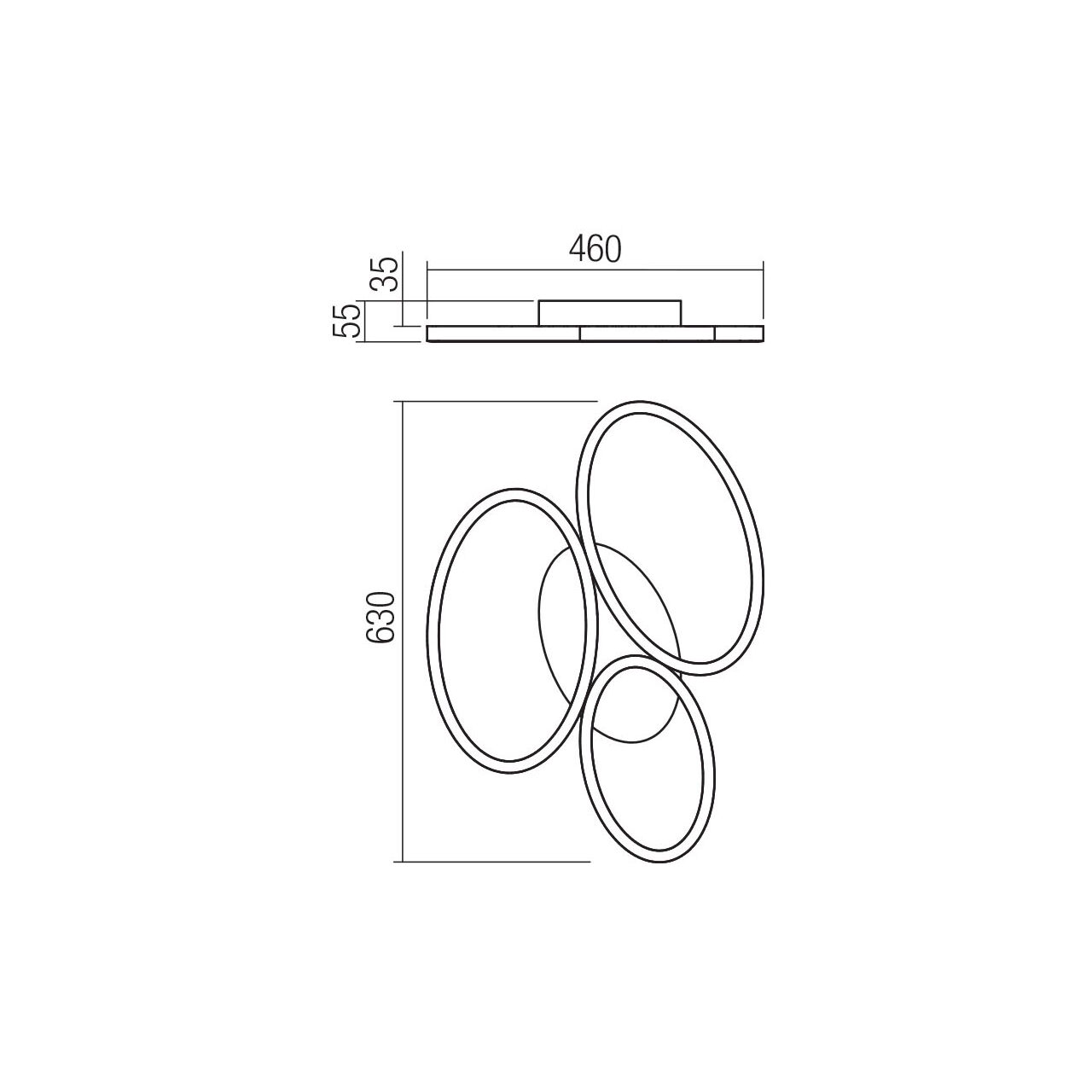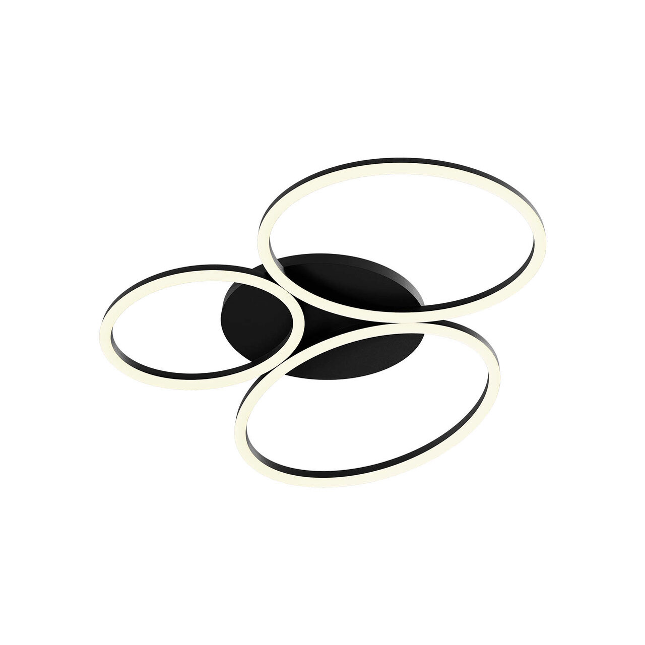 Plafonieră pentru interior, echipată cu LED-uri SMD, cu posibilitate de selectare a temperaturii de culoare a luminii, structură din metal și aluminiu vopsit negru mat, dispersoare din silicon alb opal.