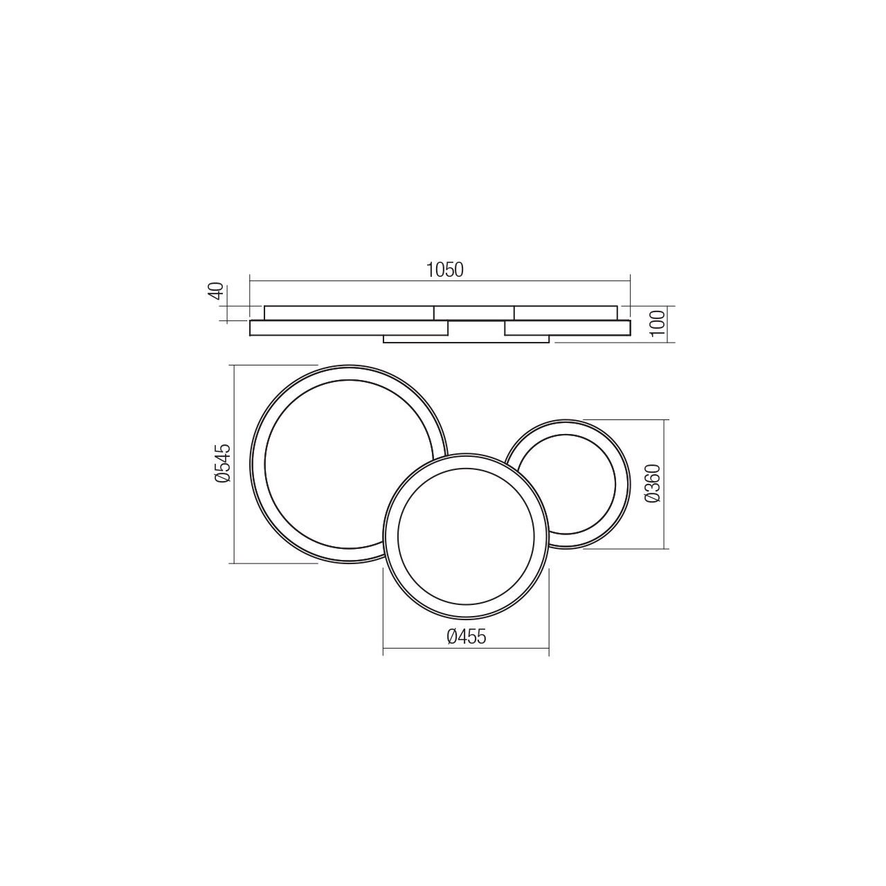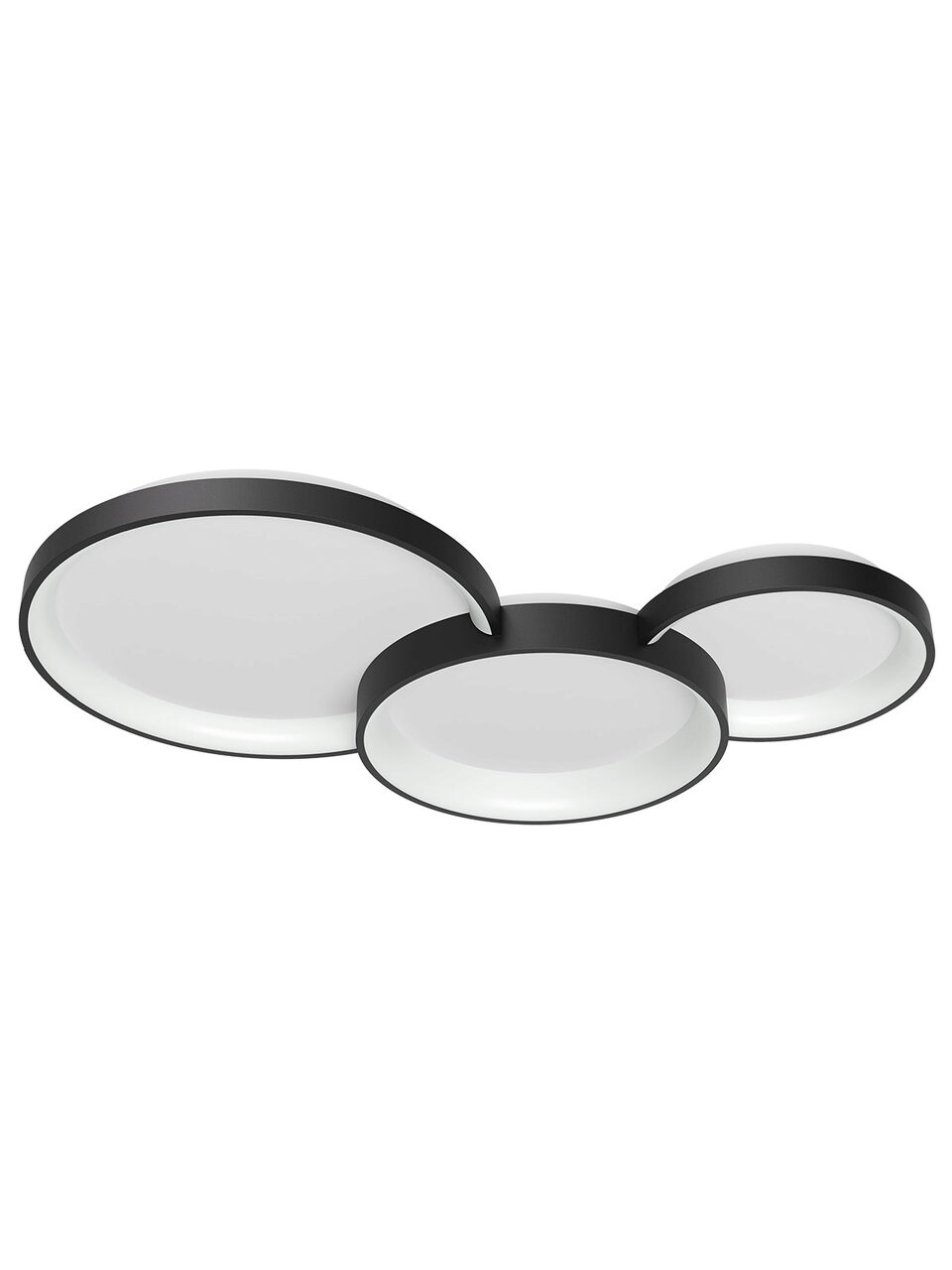 Plafonieră pentru interior, echipata cu LED-uri SMD, cu posibilitate de selectare a temperaturii de culoare a luminii, structură din metal vopsită în câmp electrostatic în culoare negru mat, dispersor din acryl alb opal.