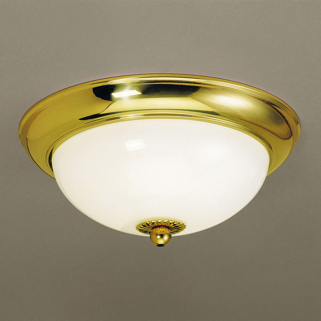 Plafoniera Wiener Nostalgie lucrata manual din alama masiva lucioasa, realizata in stil clasic vienez. Eleganta, cu o prezenta impunatoare data de echilibrul formelor si al proportiilor la care se adauga abajururile cu contururi rotunjite din sticla opal, plafoniera Wiener Nostalgie este una dintre alegerile cele mai bune pentru iluminatul sufrageriei, livingului decorate clasic. Plafoniera face parte din colectia cu acelasi nume, o colectie vasta ce reprezinta cu succes brandul Orion, care cuprinde aplice simple si duble, candelabre, plafoniere, veioze si lampadare din alama lucioasa si patinata, cu abajururi opal sau champagne. Mai mult, alama ce formeaza structura acestor corpuri de iluminat (indiferent de tipul finisajului) este protejata cu un strat de lac aplicat la finalul procesului de fabricatie.