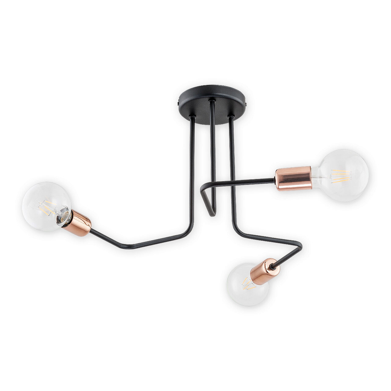 Plafoniera moderna, negru+cupru, look industrial, 3xE27/60W, Pixi 02743 W3 CZA, Lemir