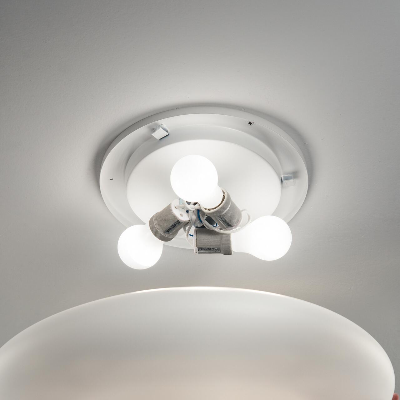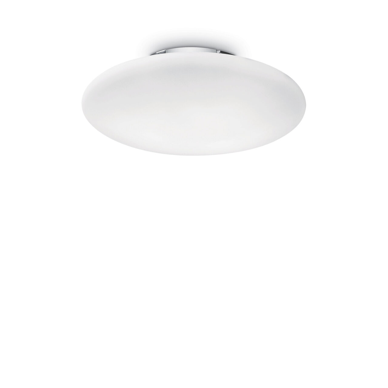 Plafoniera moderna, finisaj crom, cu abajur din sticla suflata opal. Colectia Smarties clear cuprinde 3 lustre, 3 plafoniere si o aplica. Lustrele din aceasta colectie sunt prevazute cu fire de otel a caror lungime poate fi ajustata cu dispozitivul automat incorporat in cupa din zona de prindere. Bianco, o colectie ampla de lustre, plafoniere si aplice din sticla opal. Discreta si eleganta, colectia Smarties Bianco poate fi utilizata pentru iluminatul principal sau secundar.
