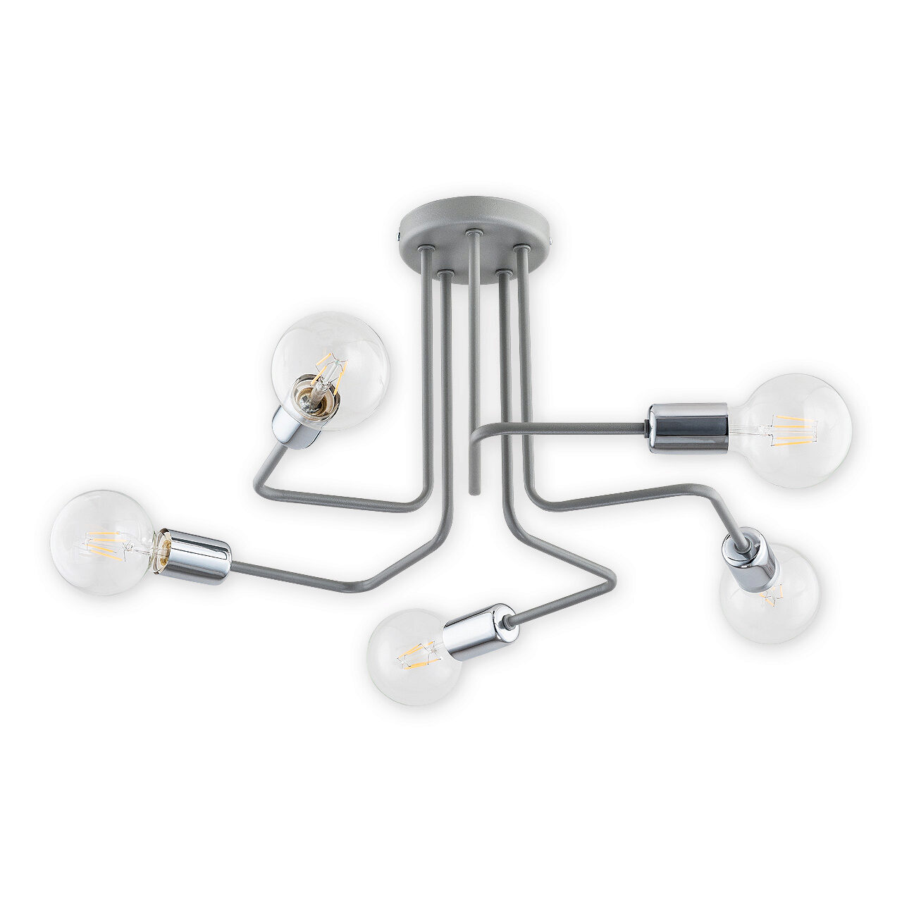 Plafoniera in stil industrial cu cinci brate fixe finisata negru cu detaliu cupru/aluminiu satinat/alama patinata. Se poate integra cu efect in amenajarile interioare moderne, chiar minimaliste sau in cele cu nota industriala si se potriveste in living, bucatarie, holuri, dormitor, camera copilului, sau in zonele de office si Horeca. Se poate utiliza fie singura, fie impreuna cu restul colectiei din care face parte. Pentru un efect maxim al corpurilor de iluminat din colectia Pixi utilizati becurile LED vintage.