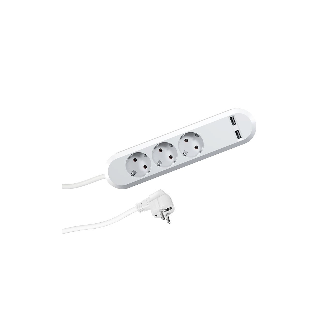 Prelungitor cu 3 prize + 2 porturi USB, cablu 1.5 metri, tensiune de alimentare 230V, curent nominal 16A, protectie IP20, din gama Smart 381.801, Bachmann.