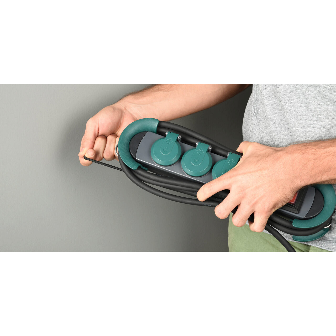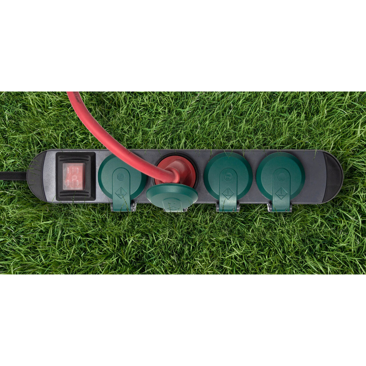Prelungitor cu 4 prize si comutator basculant cu 2 poli iluminat in rosu, cablu de alimentare de 4 metri H07RN-F 3x1.5 mmp, utilizare exterioara, din gama Hook 500.200, Bachmann.