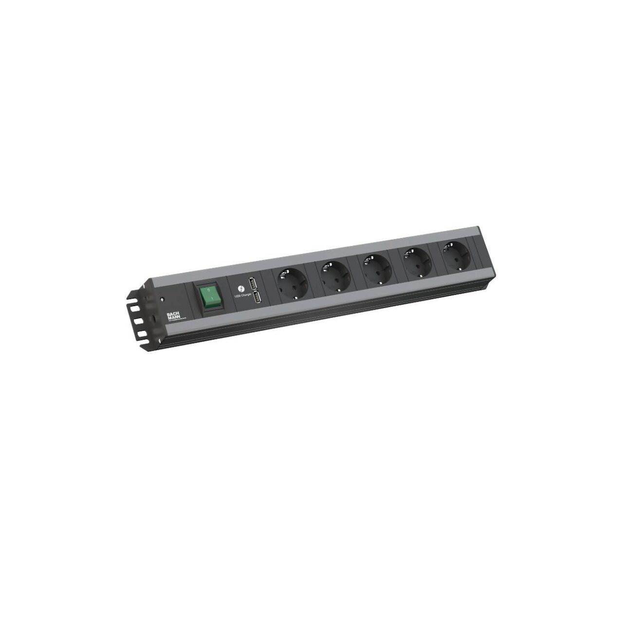Prelungitor cu 5 prize + 1 port USB si comutator, cablu de 2 metri, din gama Handwerkerleiste 300.030, Bachmann.