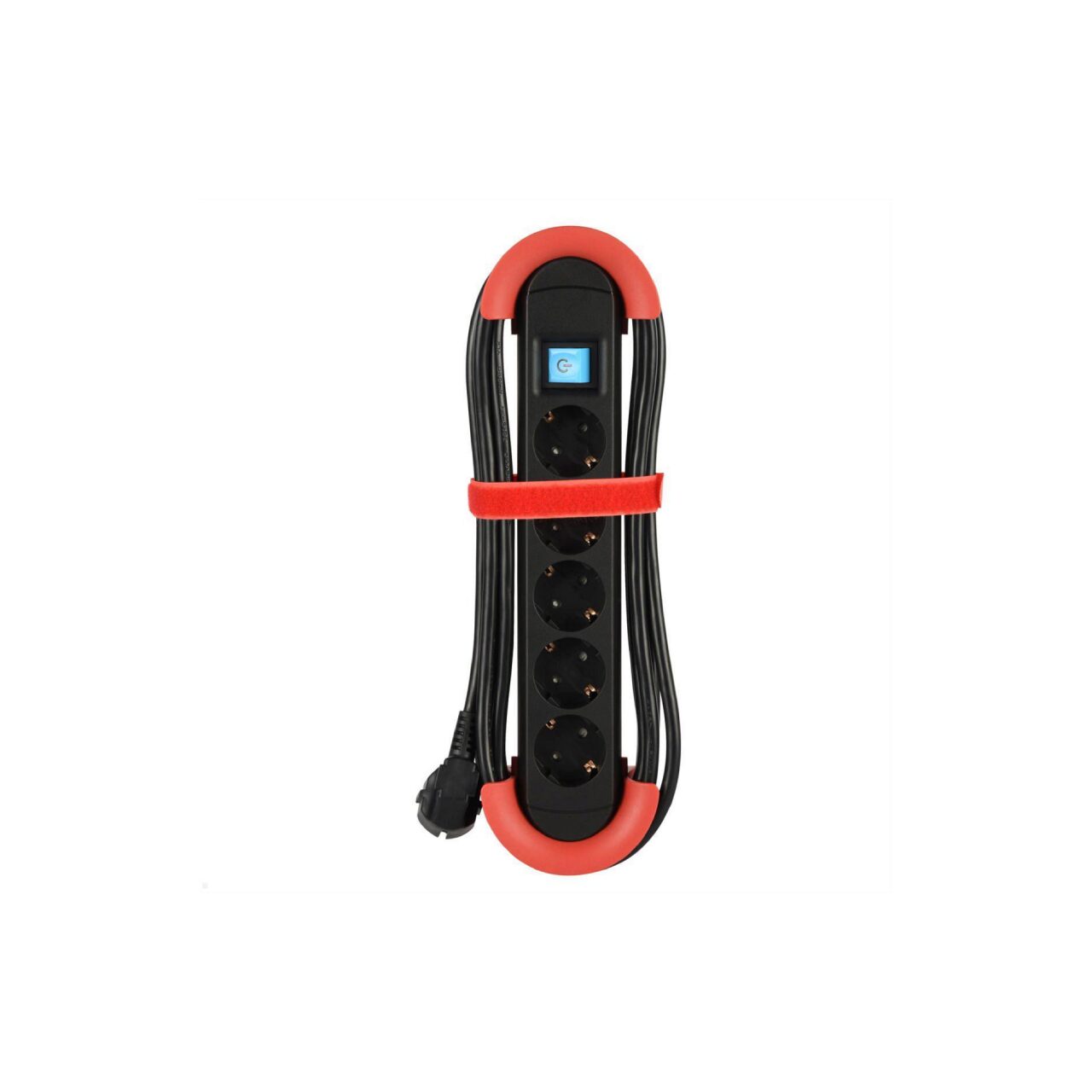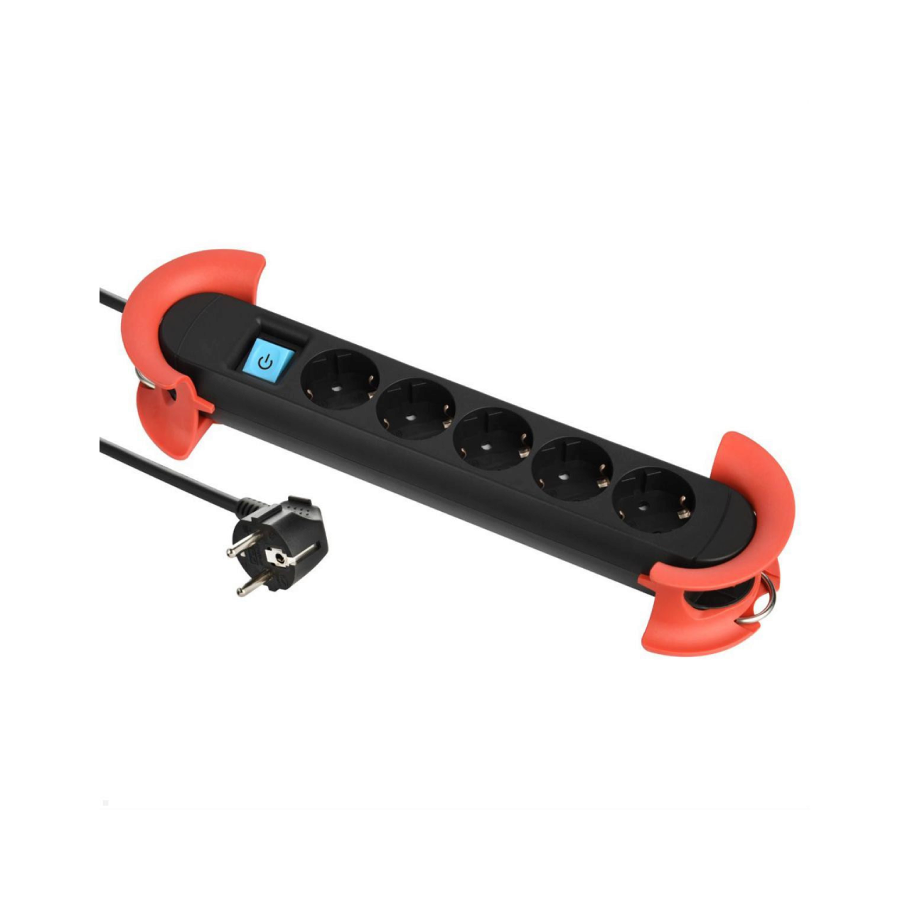 Prelungitor cu 5 prize si comutator basculant cu 2 poli iluminat in rosu, cablu de alimentare de 5 metri H05VV-F, H05VV-F 3x1.5 mmp, utilizare interioara, din gama Hook 500.100, Bachmann.
