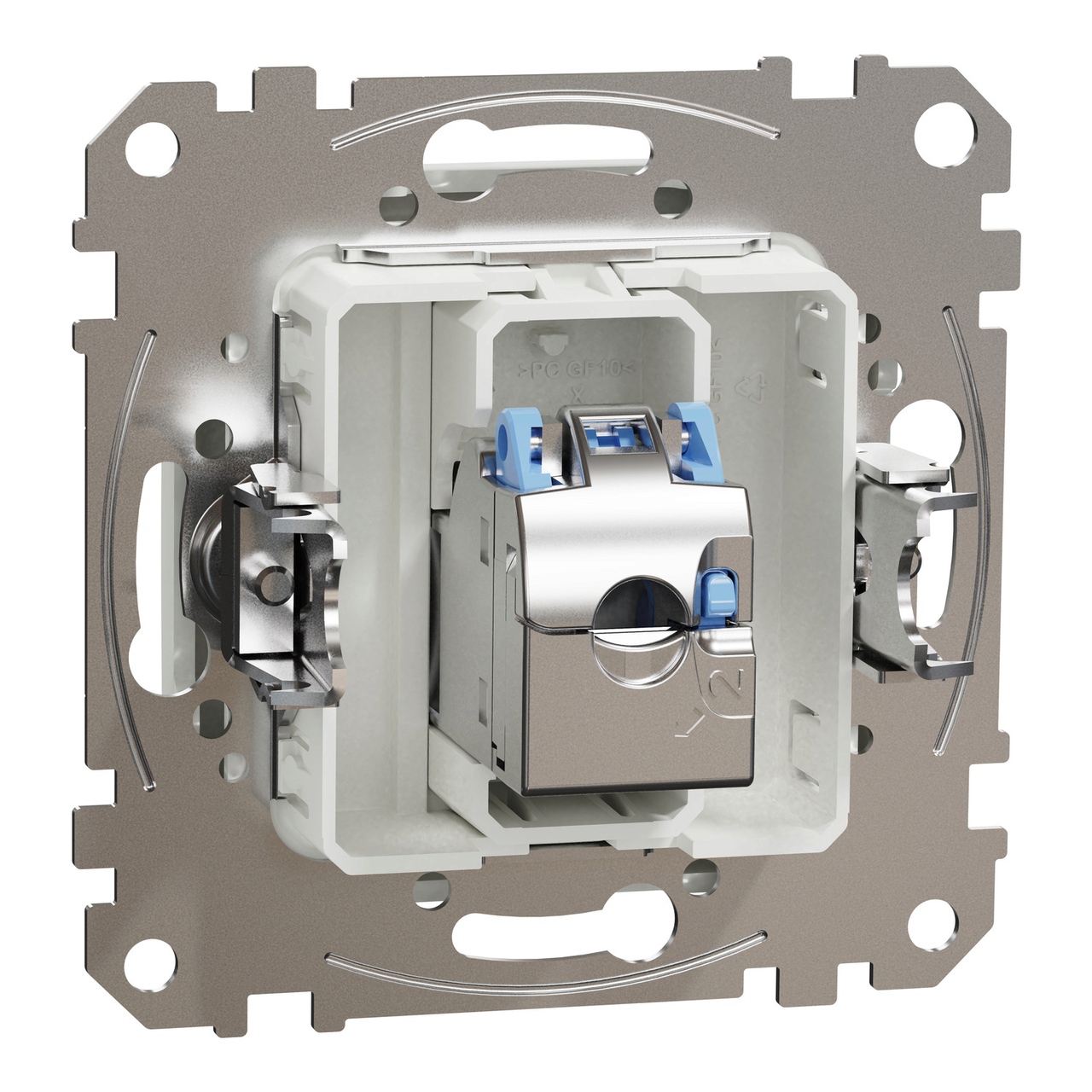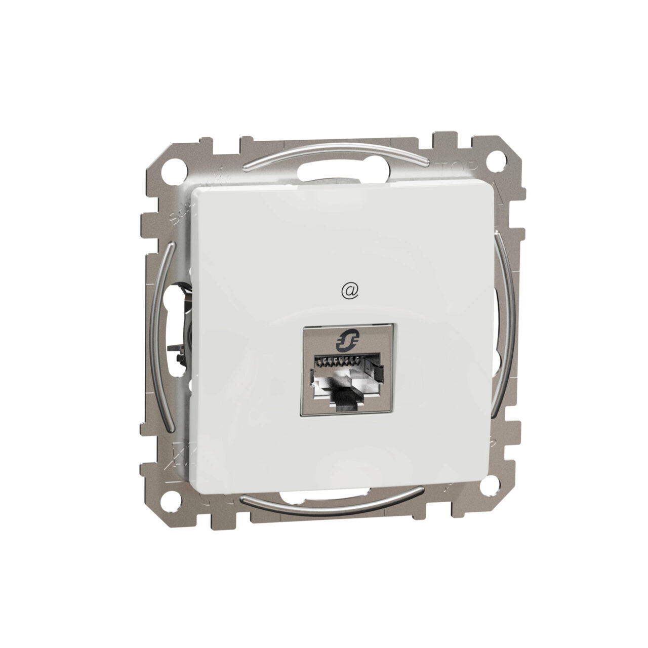 Priza date RJ45 Cat.6 STP alba, realizata din material termoplastic stabilizat ABS-UV, finisaj lucios, mecanism cu suport de fixare pentru montaj incastrat si protectie IP20.