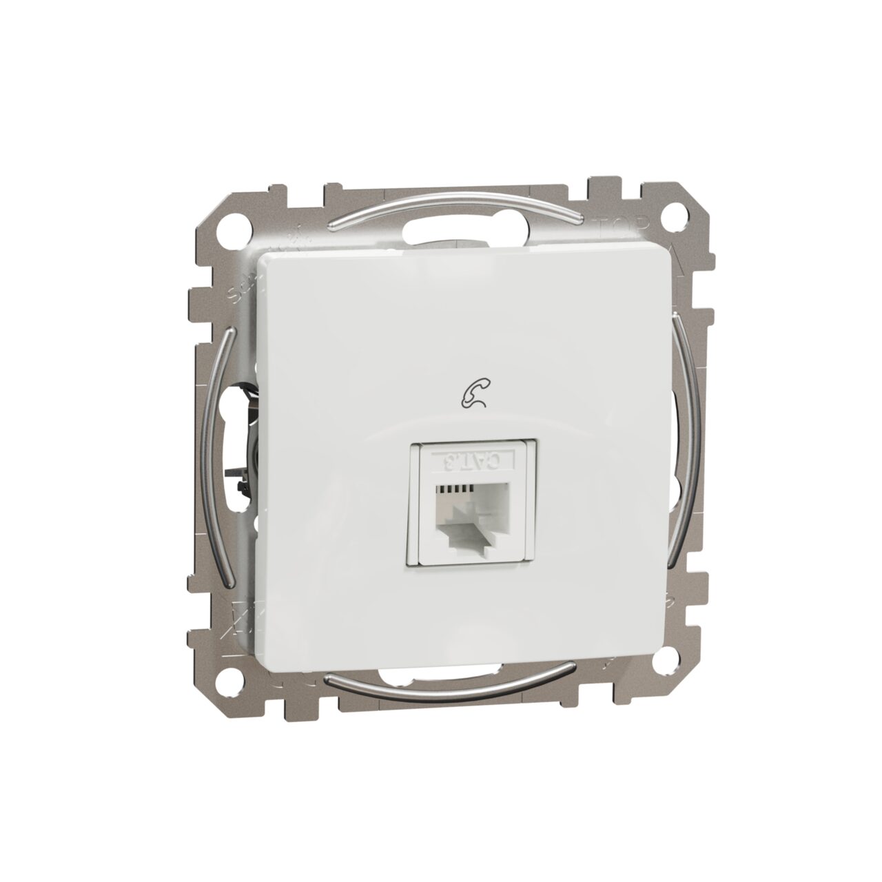 Priza telefon alba RJ11 cu montaj incastrat prin suruburi sau gheare, domeniul de lucru al deschiderii clestilor: 51-80 mm. Realizata din termoplastic stabilizat ABS-UV, finisaj lucios, protectie IP20.