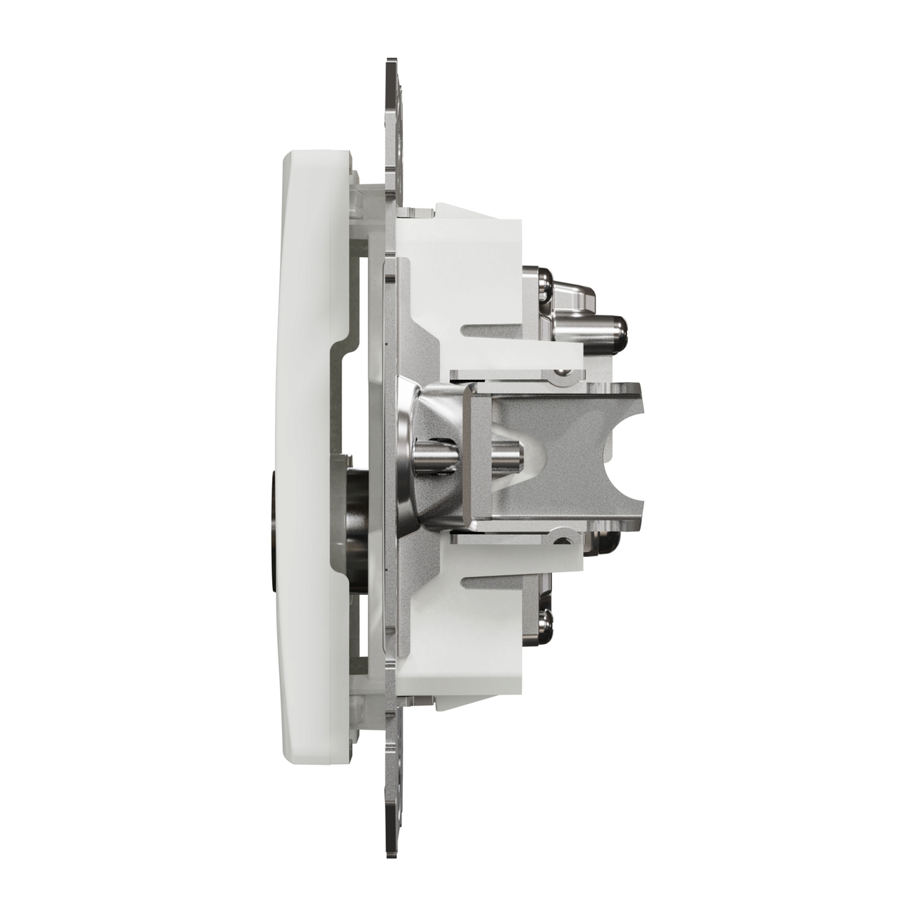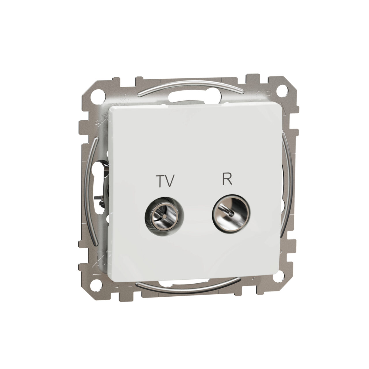 Priza TV R intermediara 7dB alba, realizata din material termoplastic stabilizat ABS-UV, finisaj lucios, netratat, mecanism cu suport de fixare pentru montaj incastrat si protectie IP20, conector TV tip tata, atenuare a traseului de 7 dB.