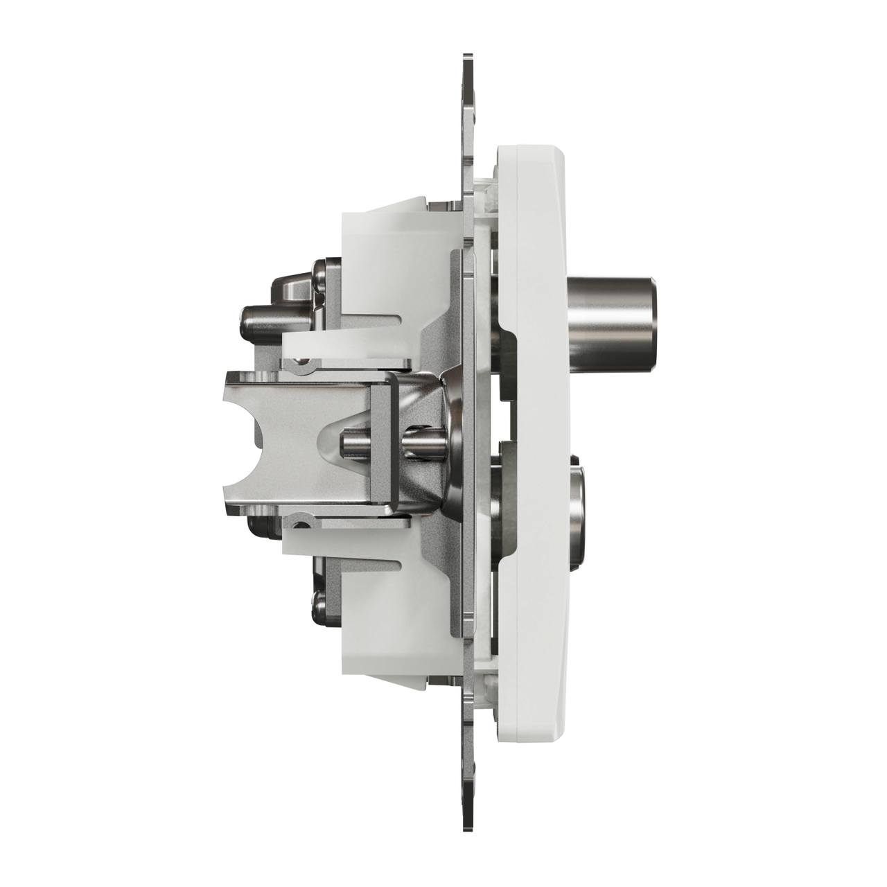 Priza TV-R-SAT intermediara 10dB alba, realizata din material termoplastic stabilizat ABS-UV, finisaj lucios, netratat, mecanism cu suport de fixare pentru montaj incastrat si protectie IP20, conector TV tip tata, atenuare a traseului 10 dB.