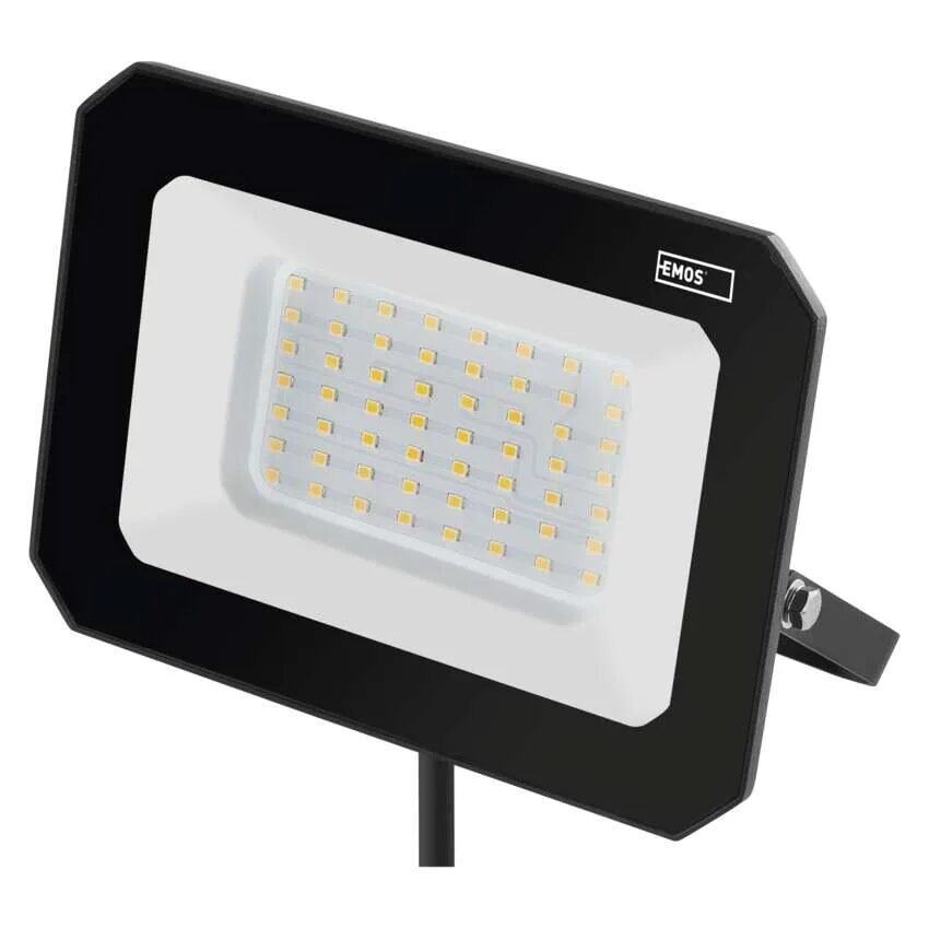 Proiector ZS2243, carcasa din aluminiu turnat sub presiune, culoare neagra si dispersor din sticla, cablu alimentare 20cm. ZS2243 este echipat cu sursa LED tip SMD, alb neutru 4000 K, 50W. Emite un flux luminos de 5000 lm, durata medie de viata 25.000 ore.