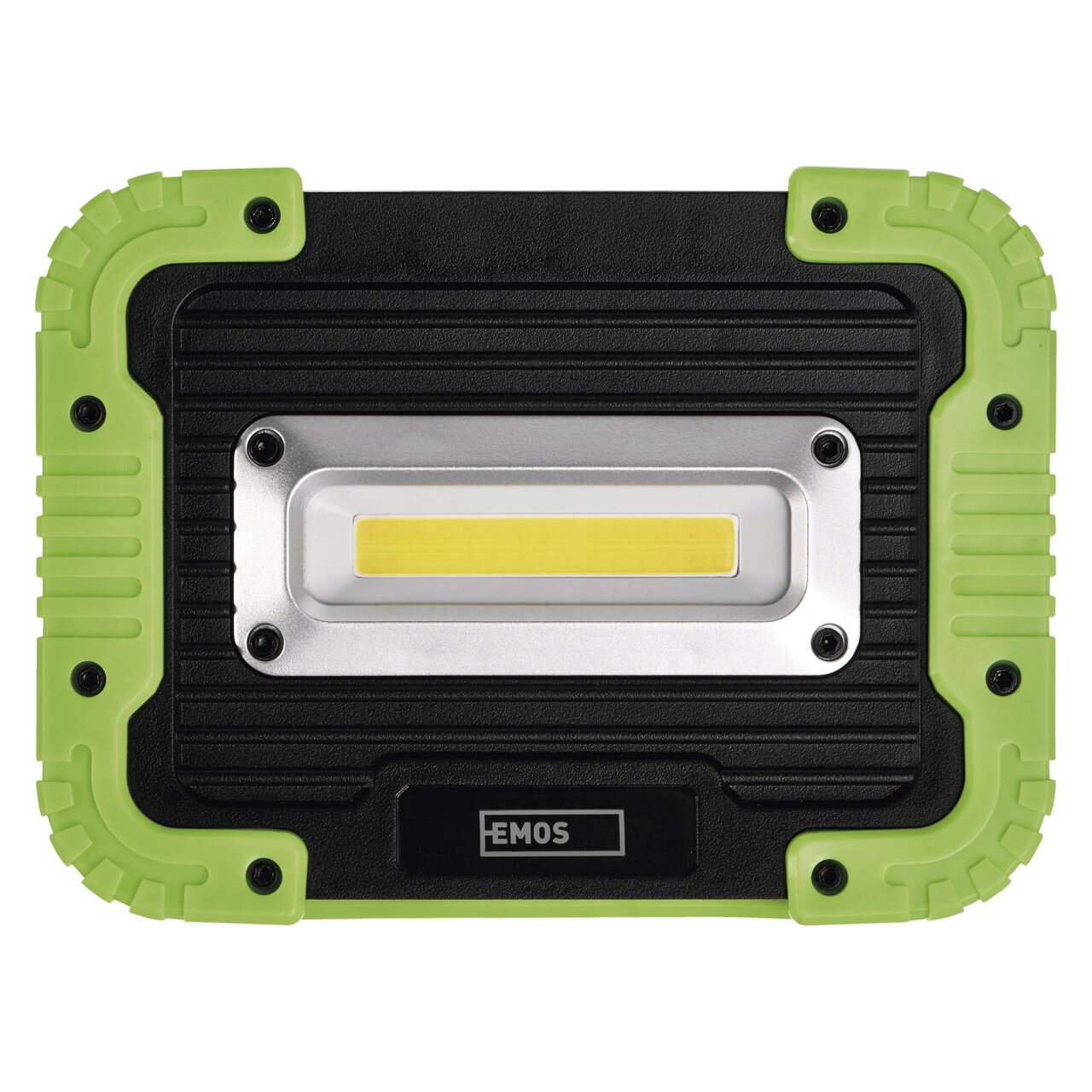Proiector LED cu acumulator, cu doua moduri de functionare (100%, 50%). Realizat din plastic ABS si cauciuc, este usor de manevrat datorita ramei solide in care este montat, rama prevazuta cu maner cauciucat. Ideal pentru a asigura iluminatul in santiere, iluminatul spatiului de lucru atat indoor, cat si outdoor. Pe partea din spate este gasi o mica fereastra cu balamale, sub care sunt ascunse in siguranta 2 porturi USB. Se poate incarca reflectorul cu cel mai mic (USB-B), in timp ce cel mai mare (USB-A) va permite utilizarea din nou energiei stocate - de exemplu, incarcarea telefonului mobil in caz de urgenta. LED-ul albastru informeaza continuu despre starea de incarcare si cantitatea de energie ramasa in reflector. Autonomie 2.5-3.5 ore, in functie de intensitatea de lumina: 100% sau 50%. Este echipat cu o baterie Li-Ion de 3000 mAh, 3.7V. Grad de protectie IP44 (utilizare indoor si outdoor).